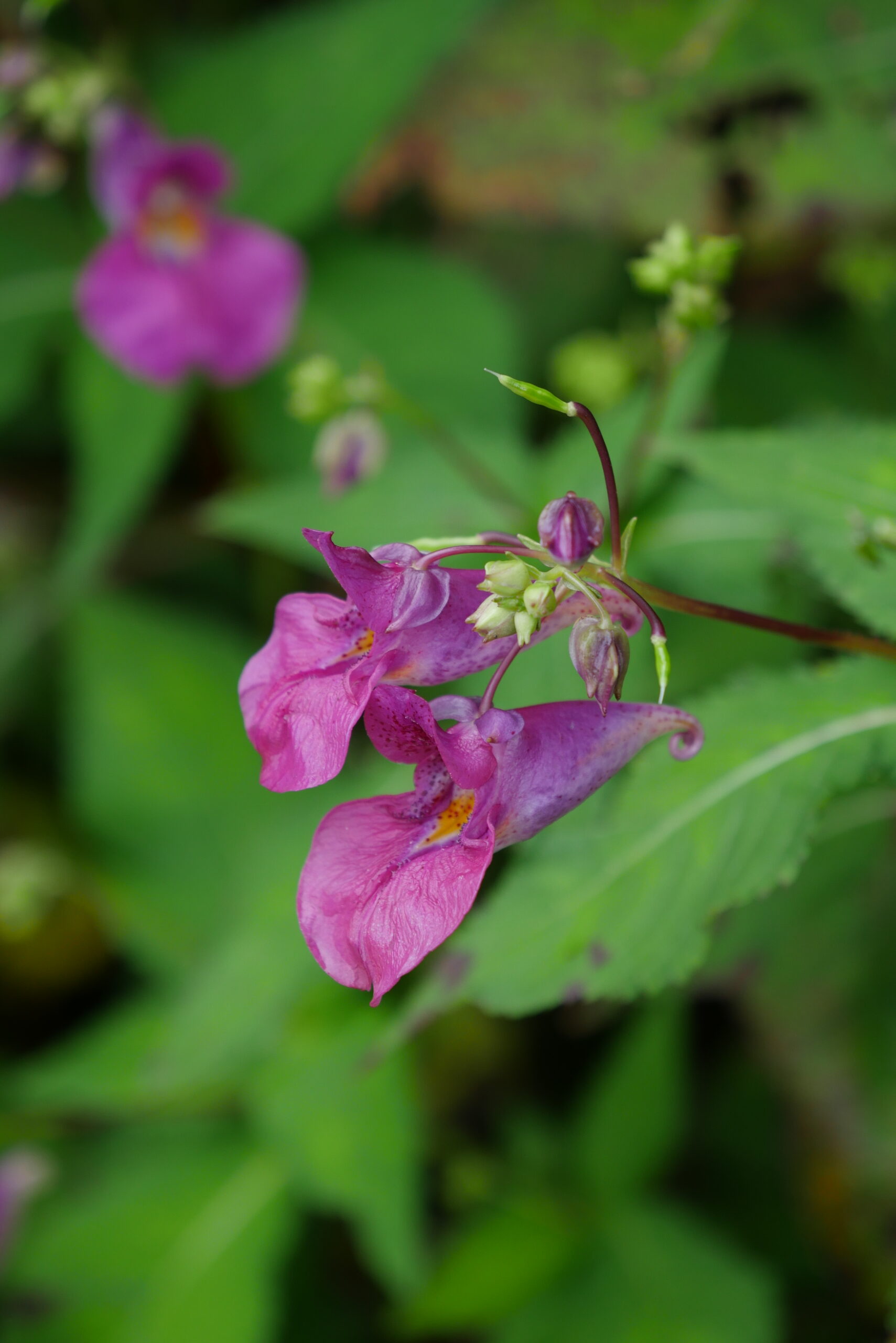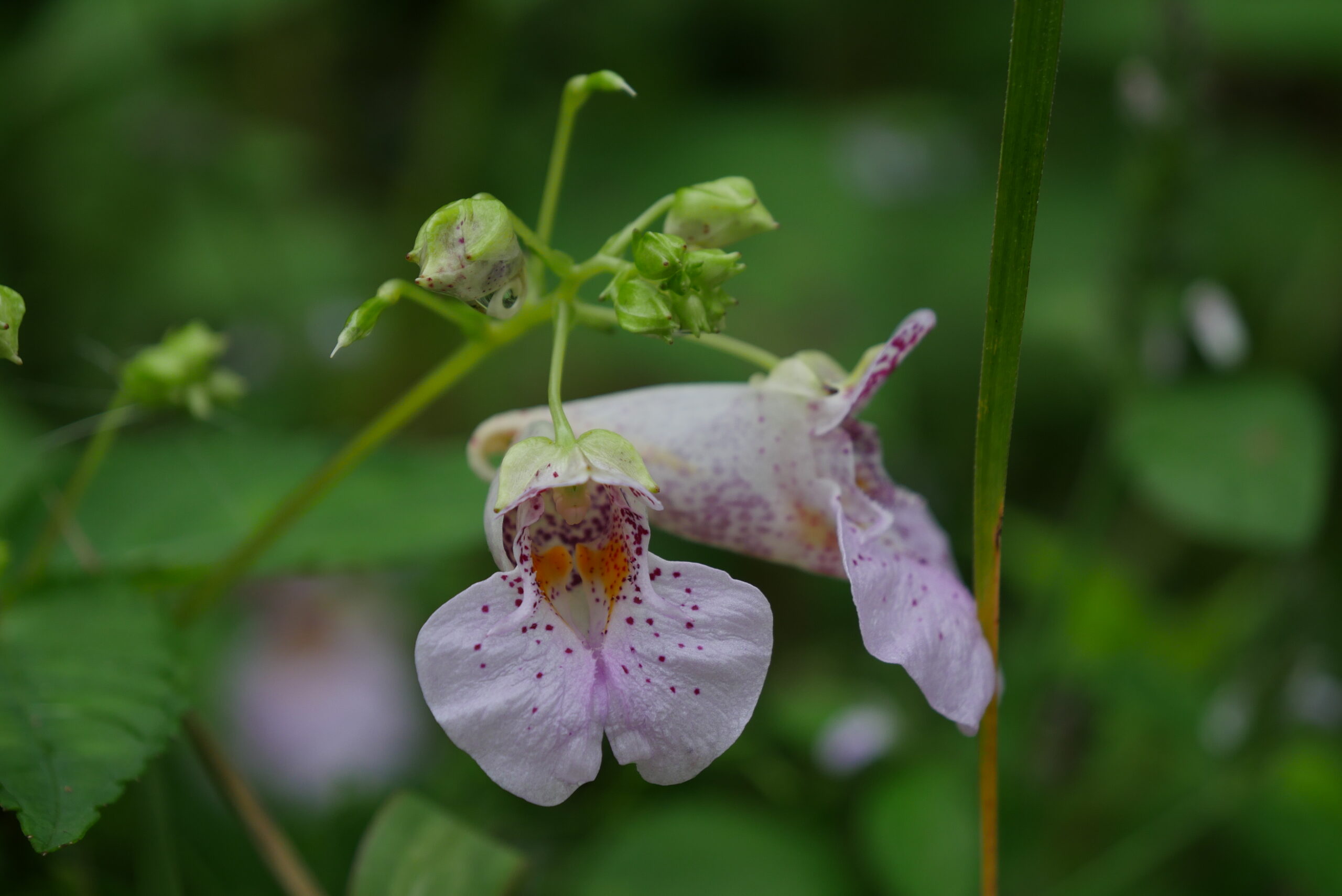 写真はツリフネソウ。昔はどこでも咲いていたが、秋に草刈りをするため群生しているところは少なくなっています。