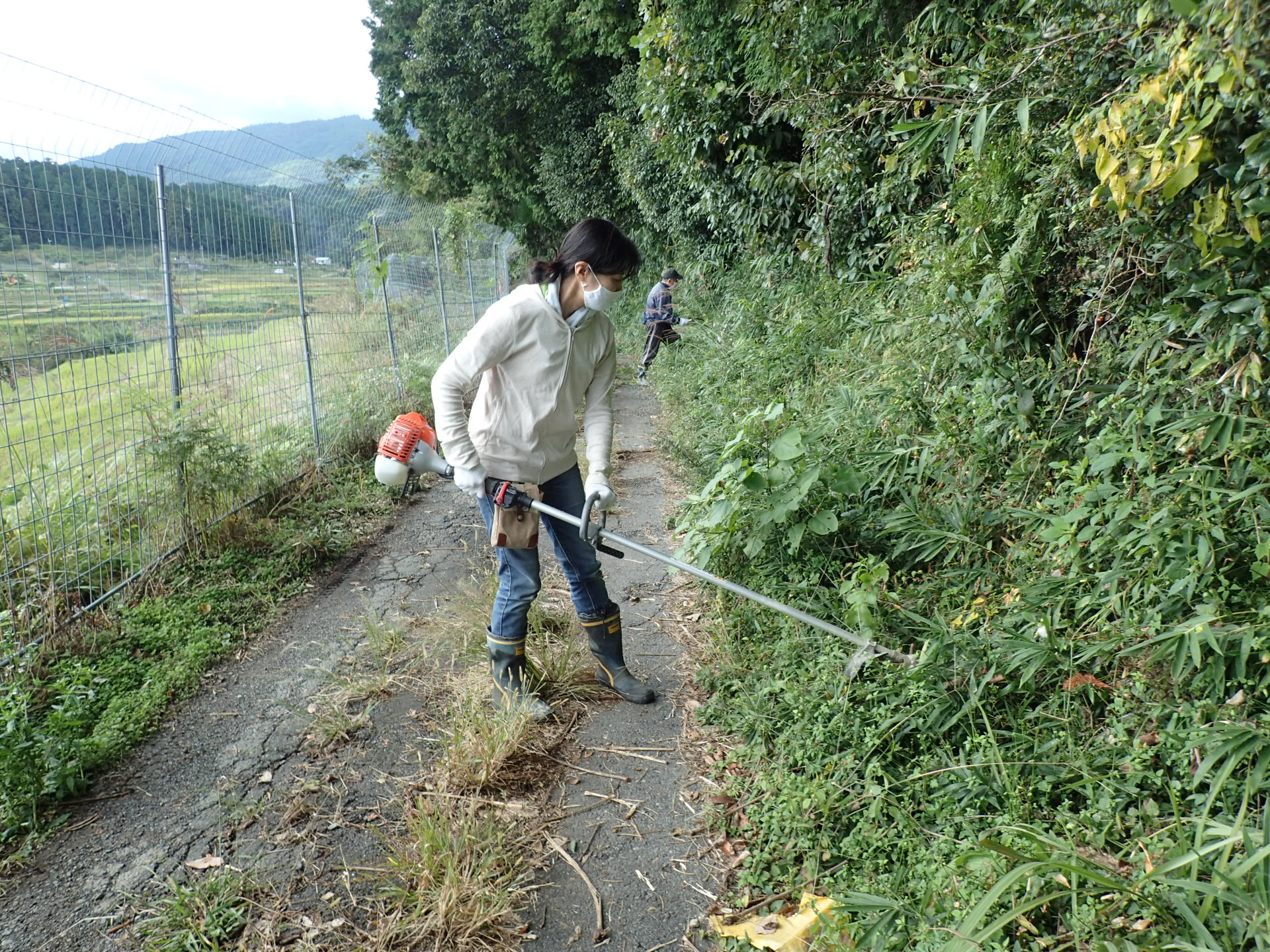 農道側に茂りだす頃に草刈りをします。誰がやるとかは決まっていないので、今回は守り人の会で草刈りをしました。