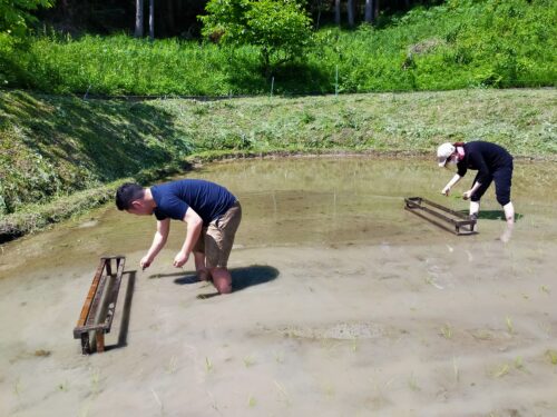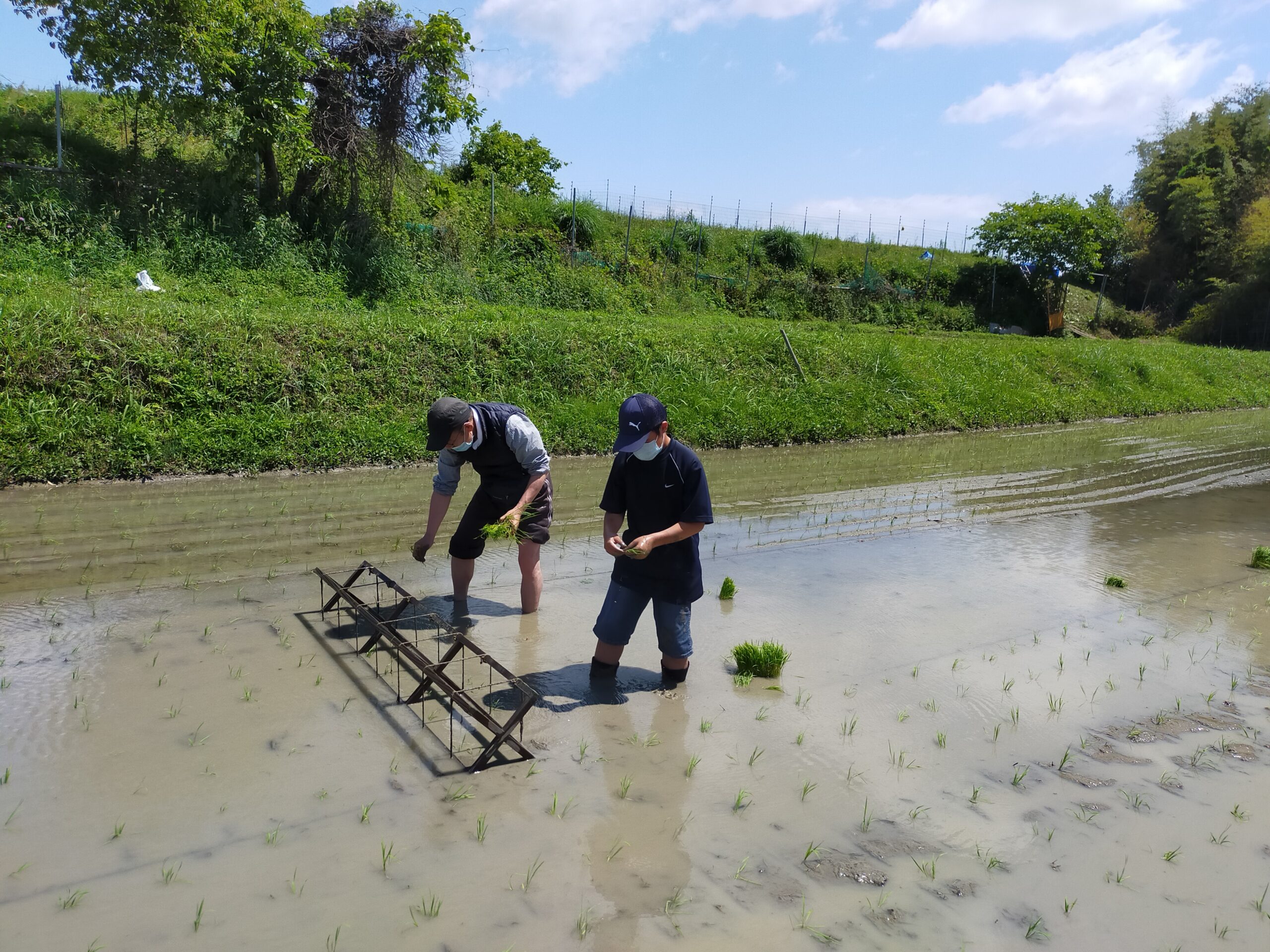 コロナ対策、三番手・廣岡班/佐合井班の田植えです。