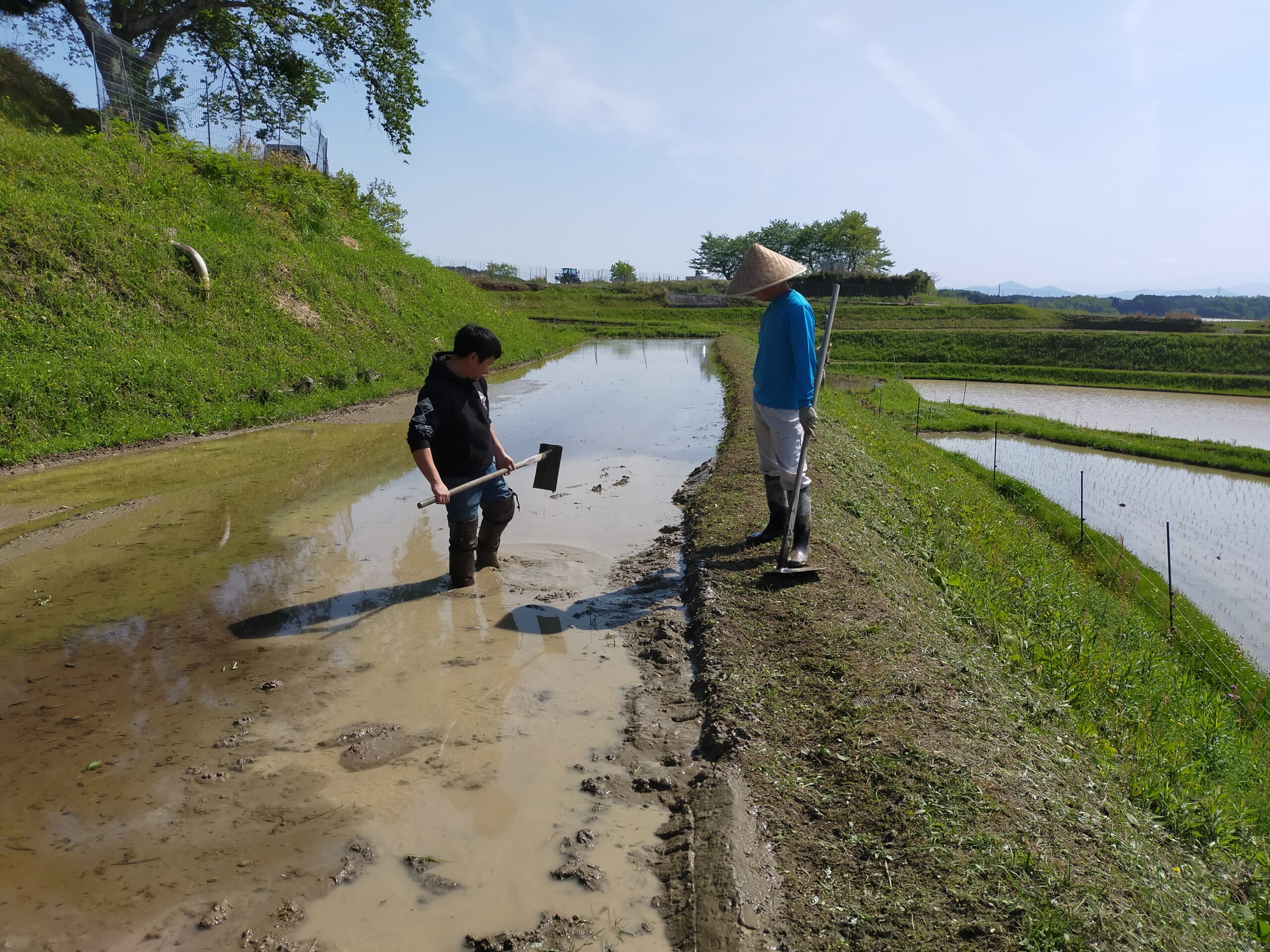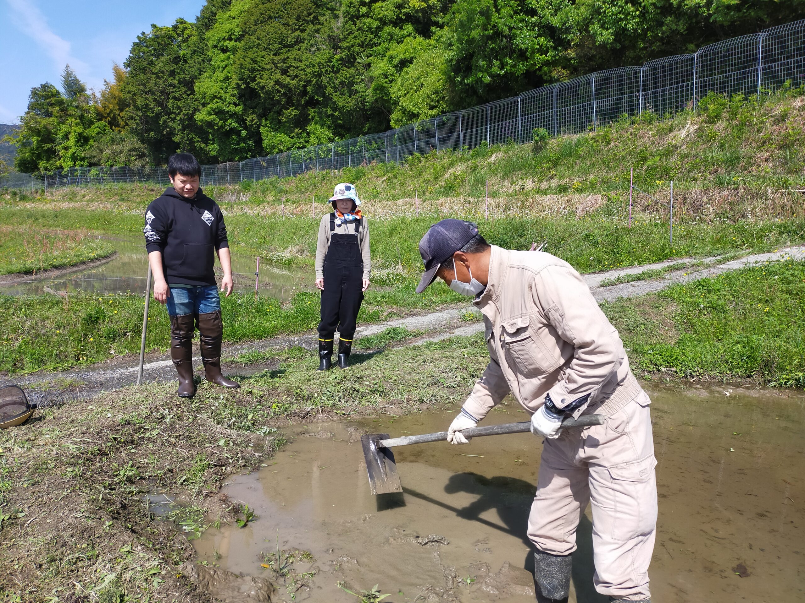 その圃場のオーナーとなってくださった方が、事前作業も体験したいということで畦塗りを体験してもらうことになりました。