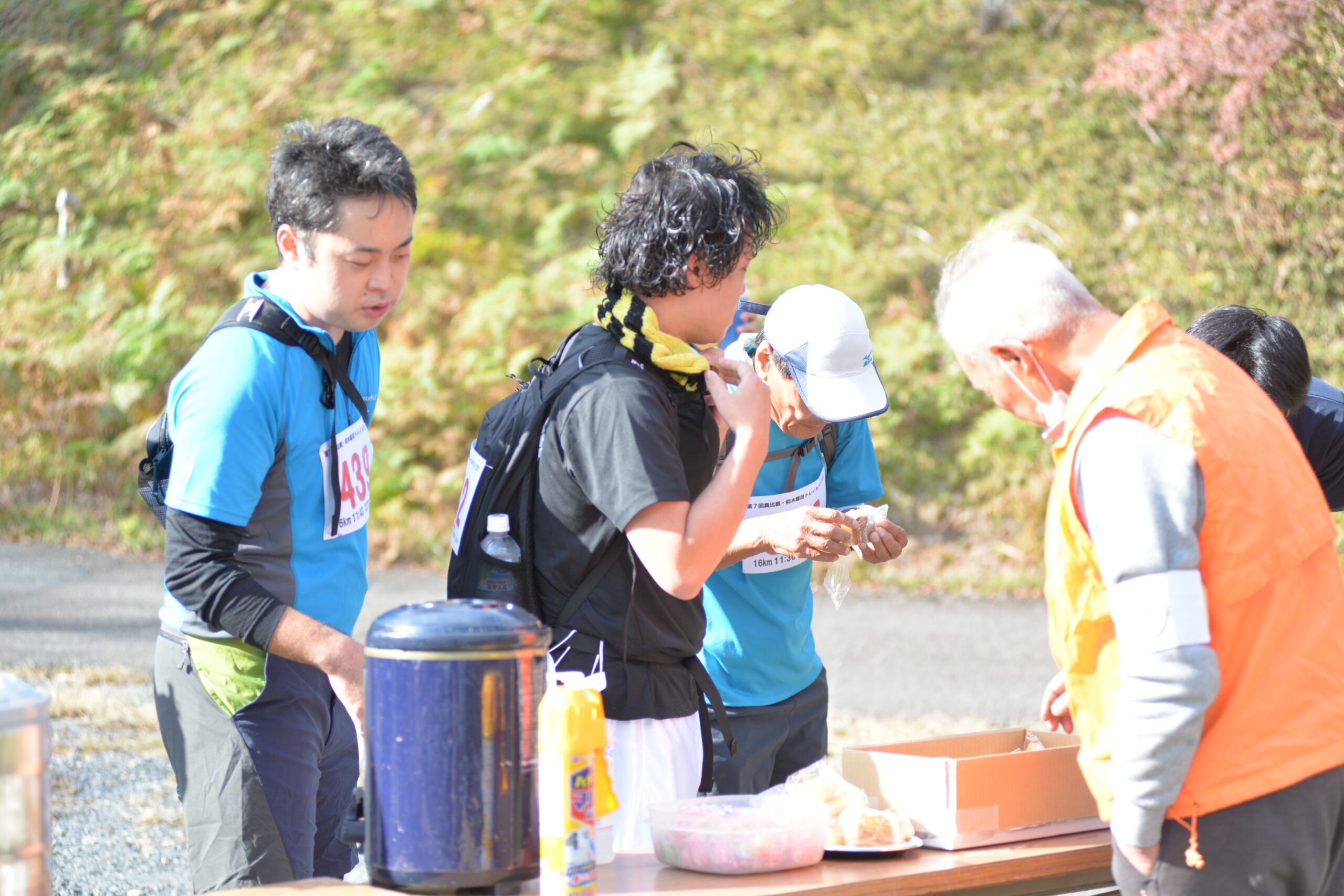 エイドで補充作業などをしているとゴールした人を迎える仰木太鼓が聞こえてきます。その音を聞くと不思議と達成感と安心感がわきました。
