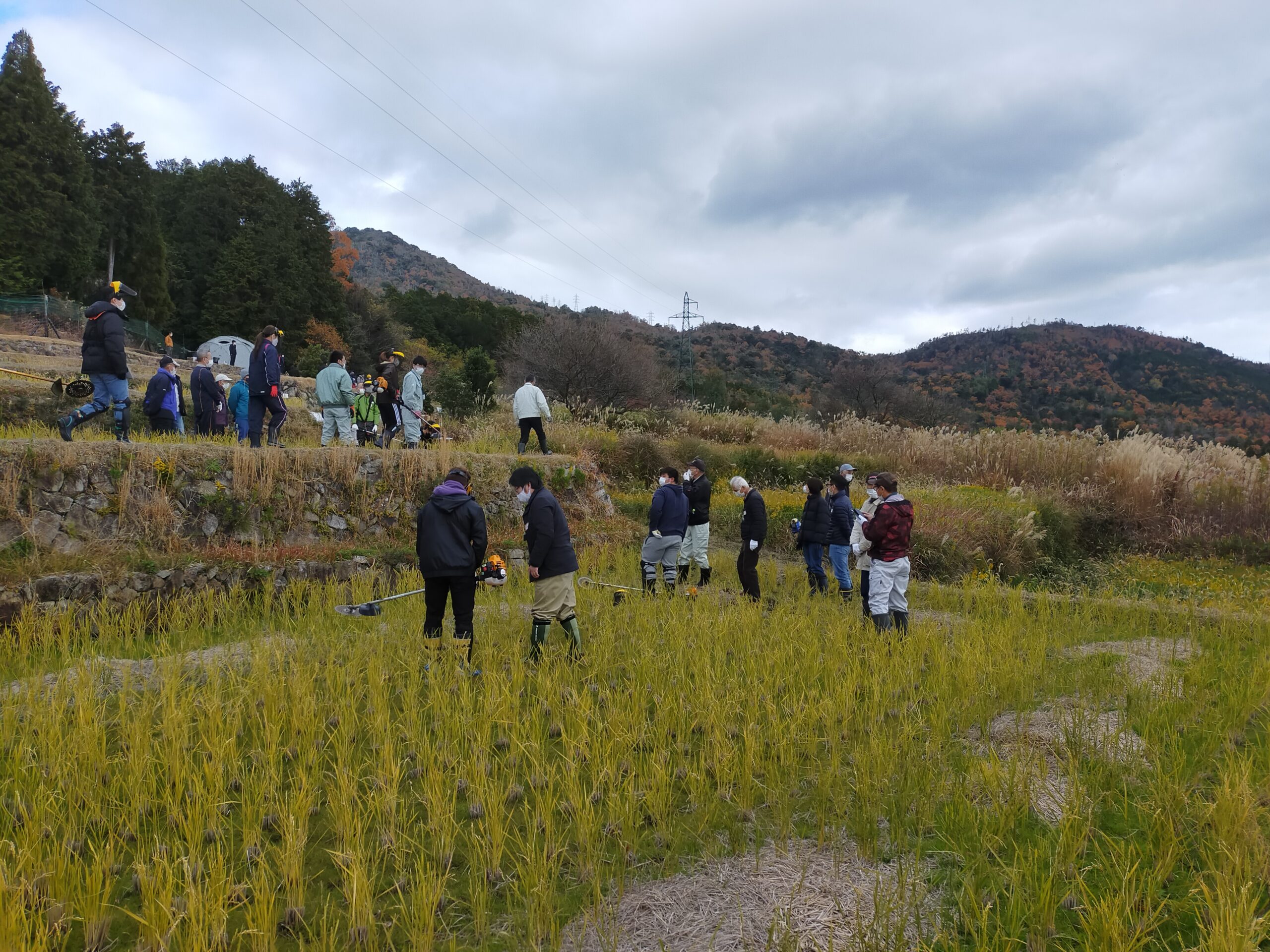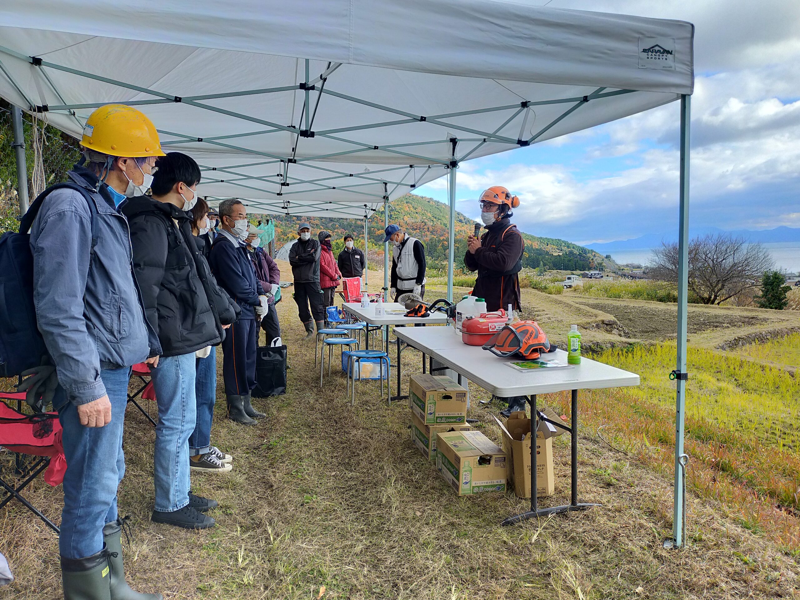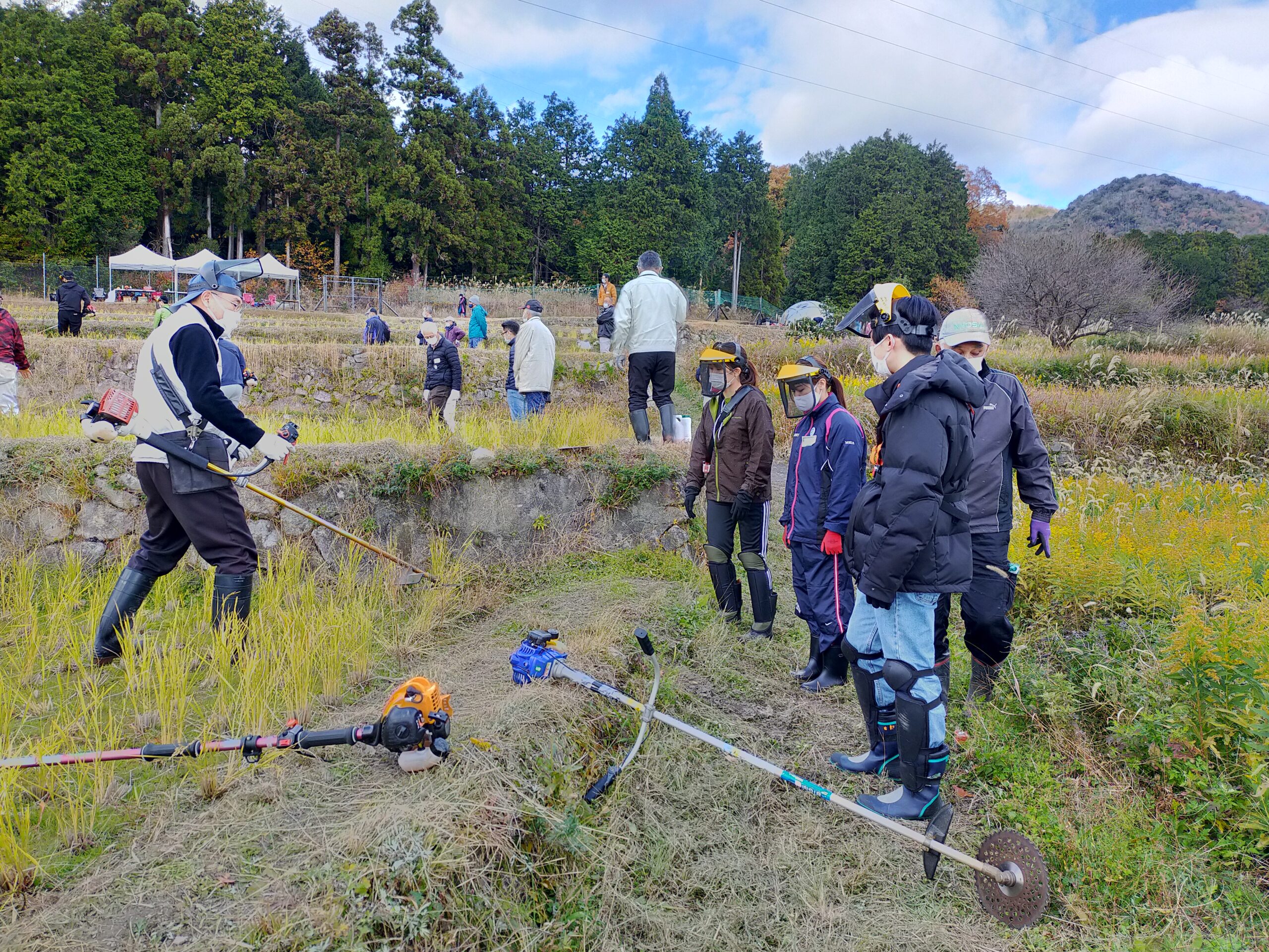 前半は草刈りの講習会がありました。草刈りは毎日のようにやっているので我々は未経験の方たちのサポートに携わりました。