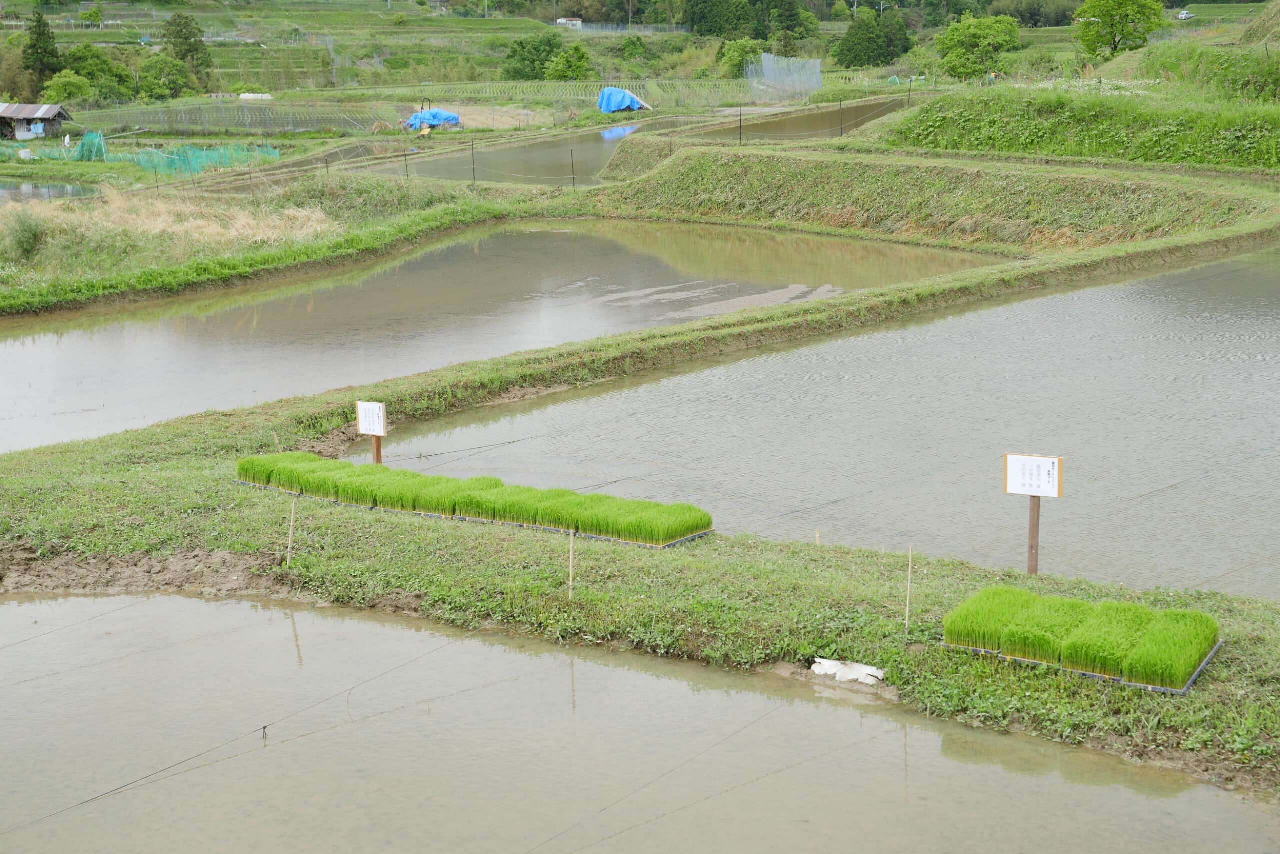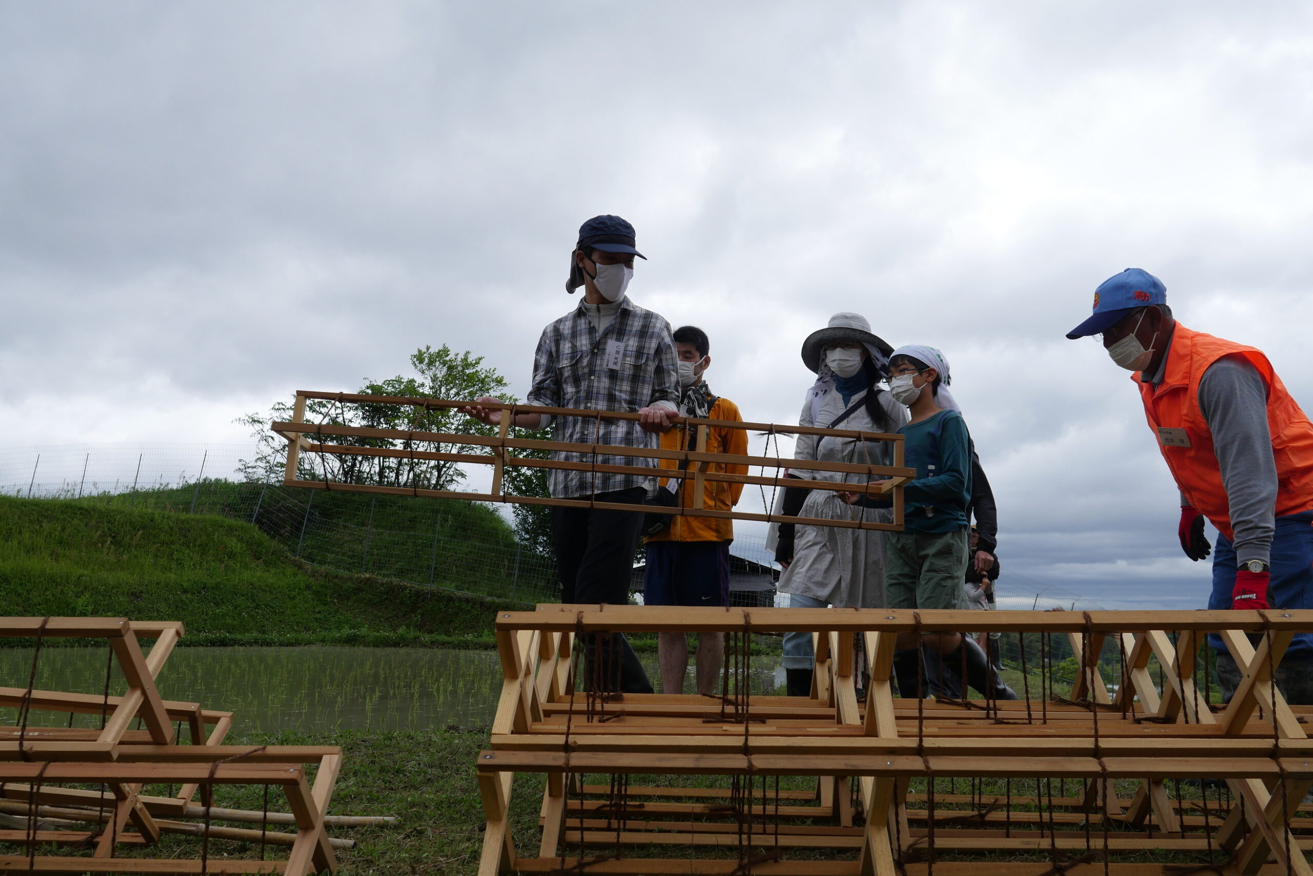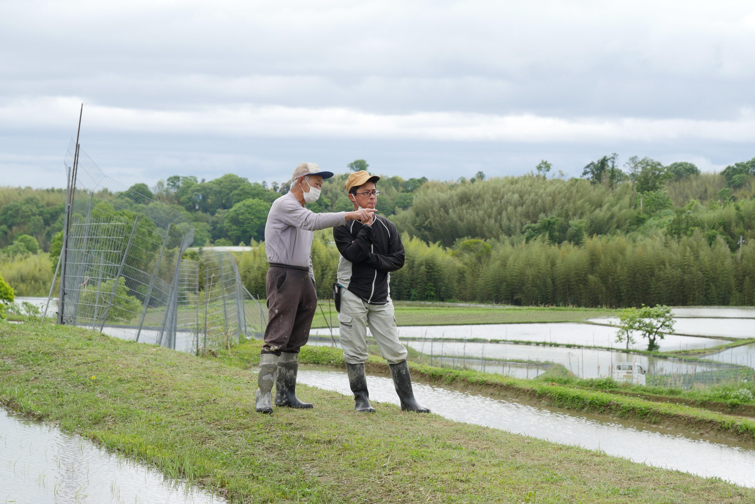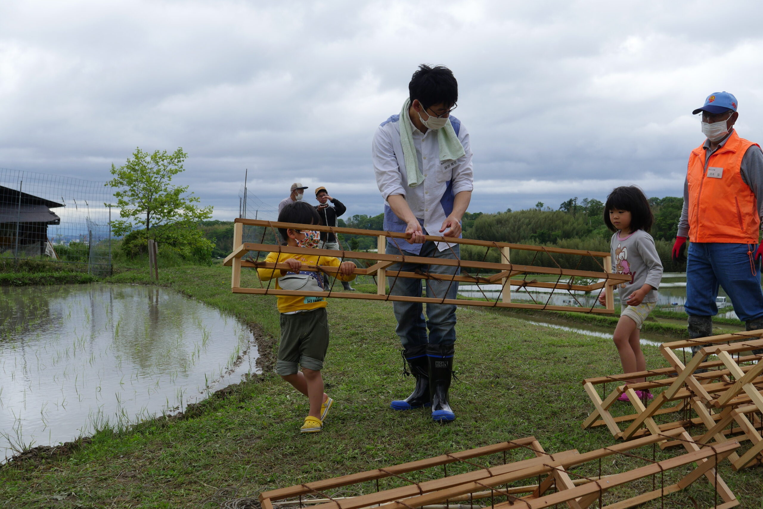 どんよりした空のもと2022年度のオーナー制度田植えがスタートしました。