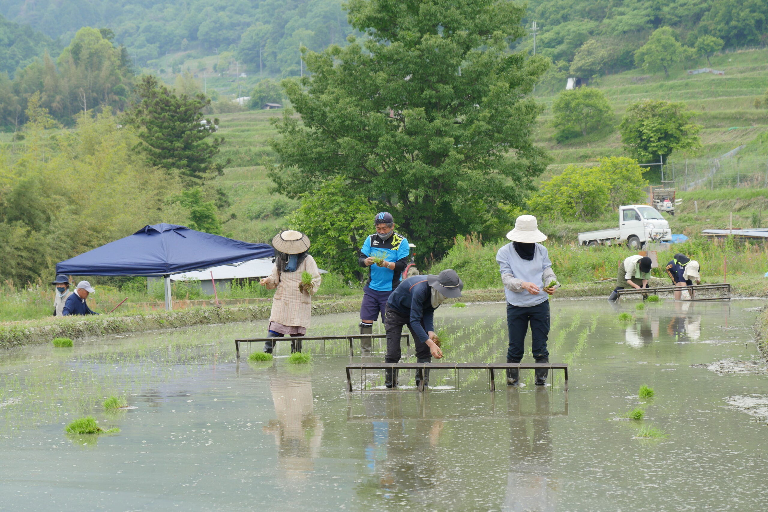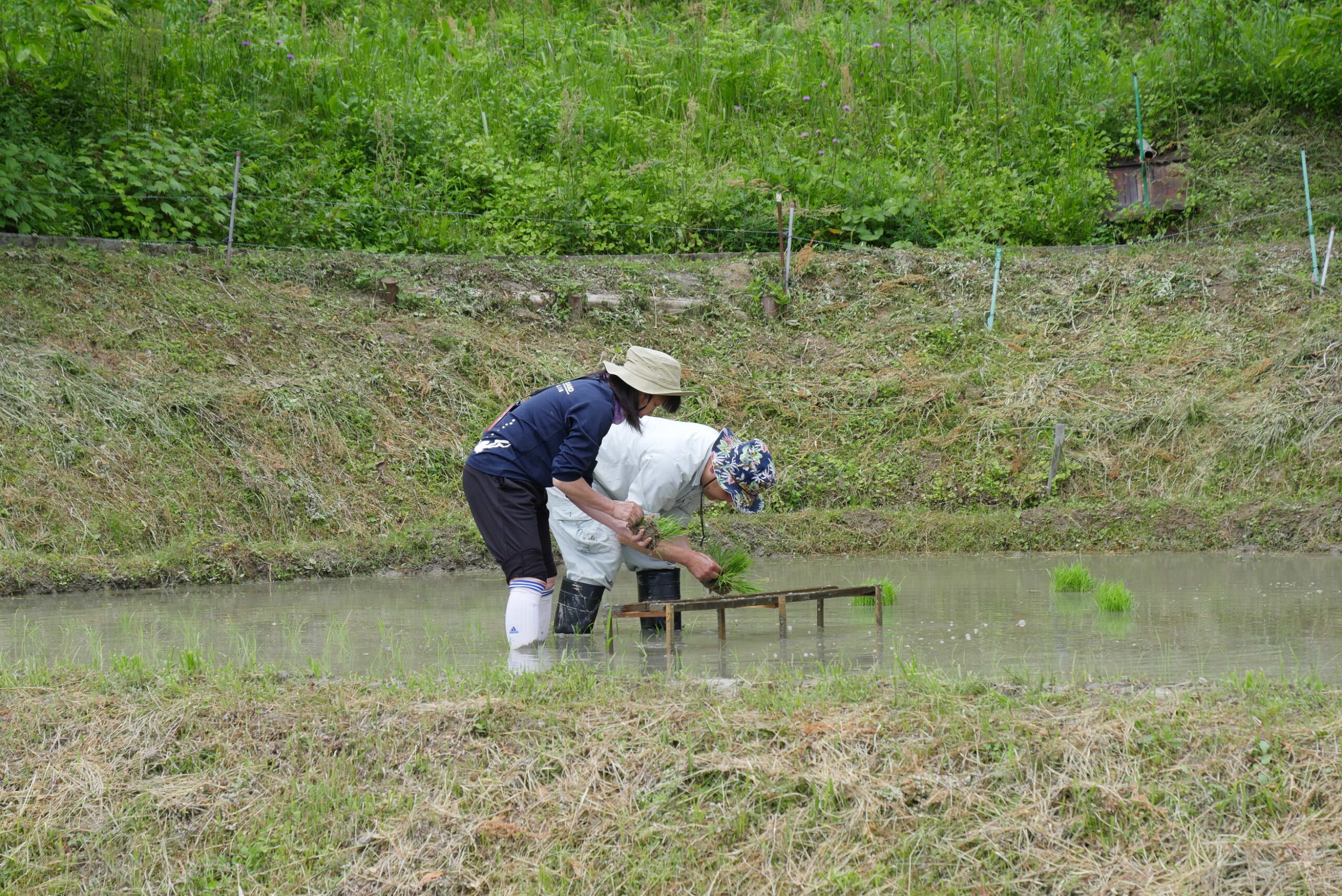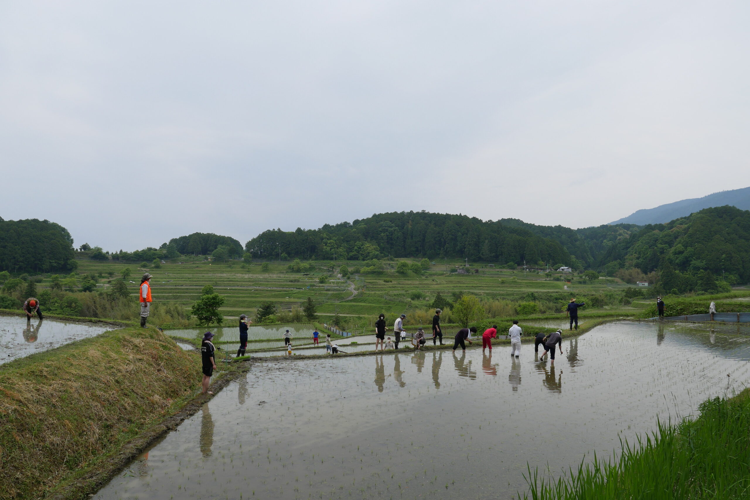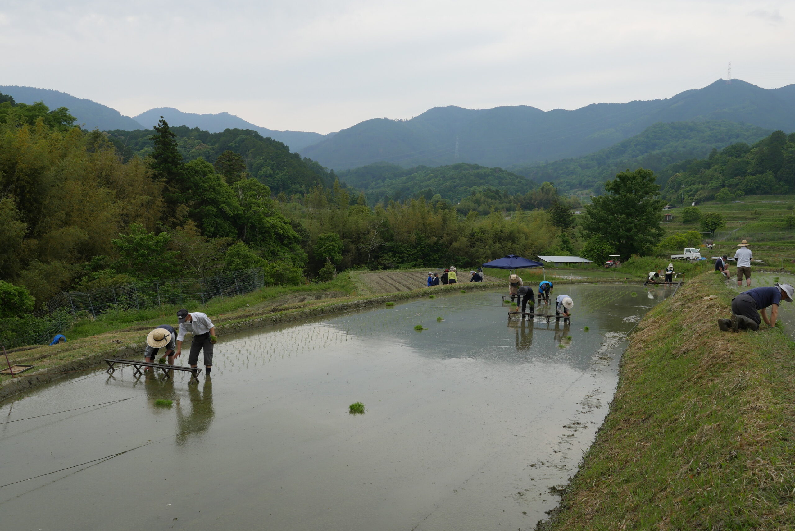 先週に引き続き田植えです。明日もあるので会員も連日たいへんですが、この3班は当会がオーナー制度をはじめてから続けてくださっている方が数組いらっしゃり、ベテランが多いので地主衆も特に何もすることなくにこやかに見守っています。のんびりした雰囲気がいいです。