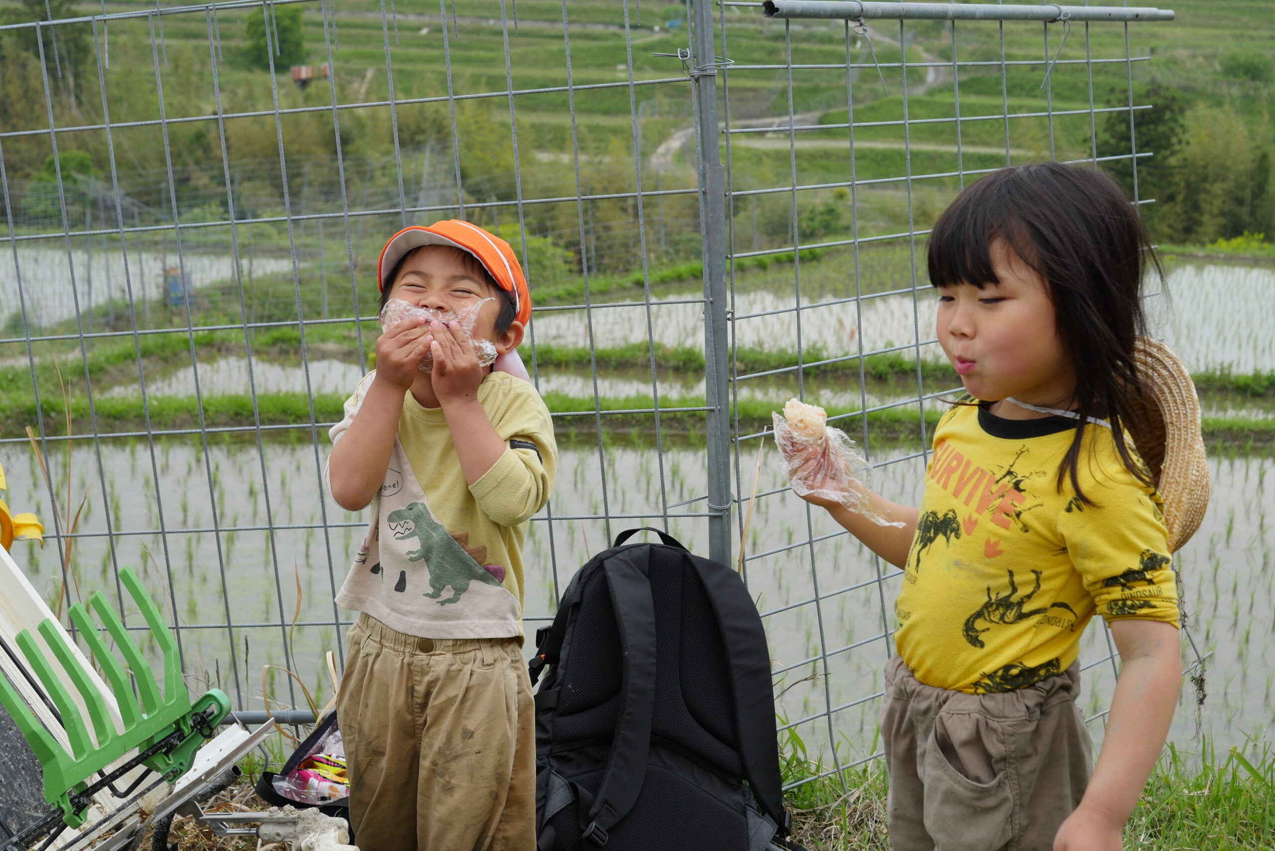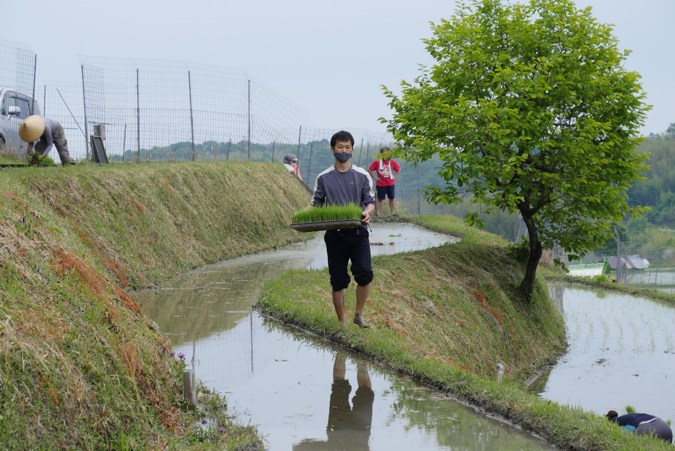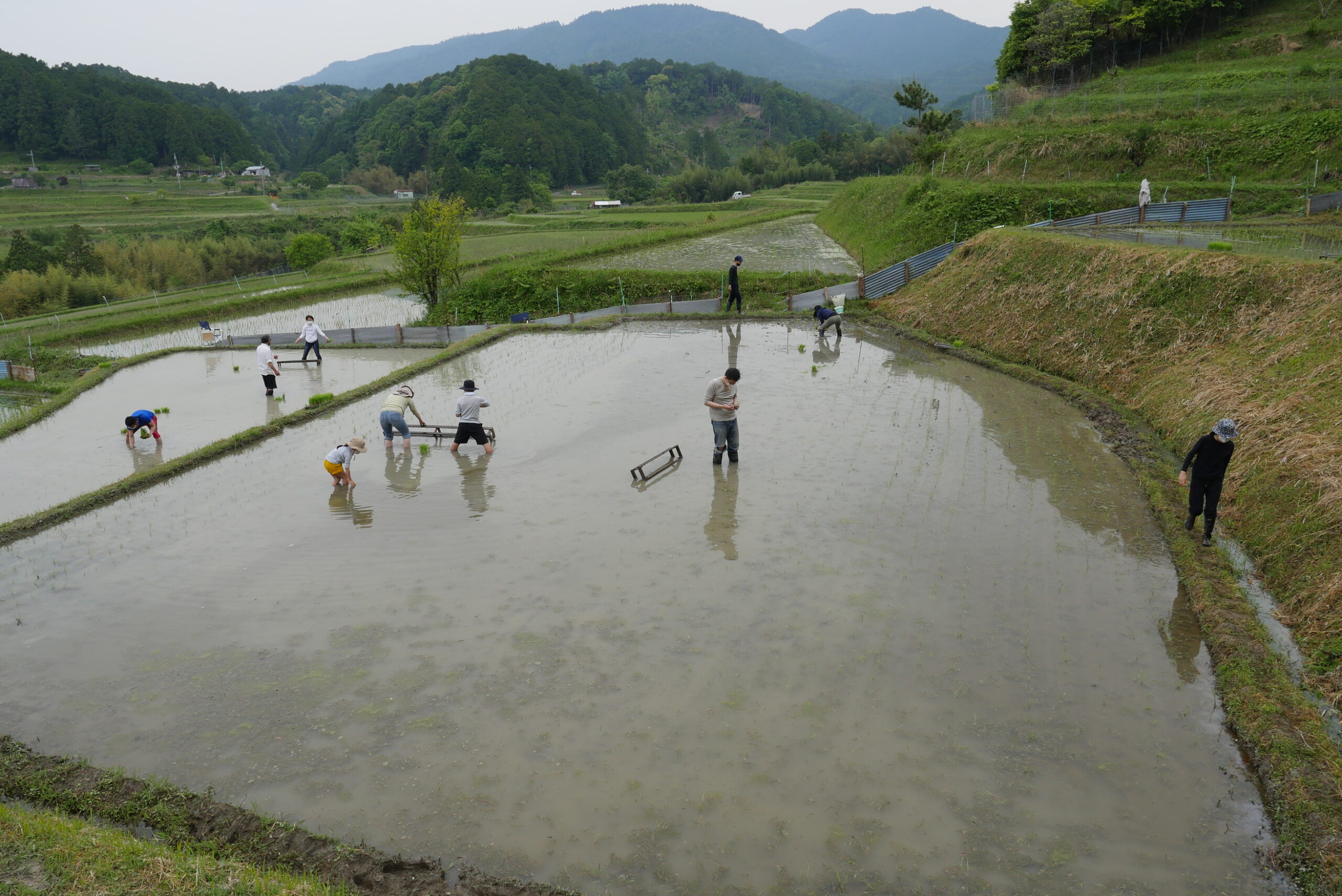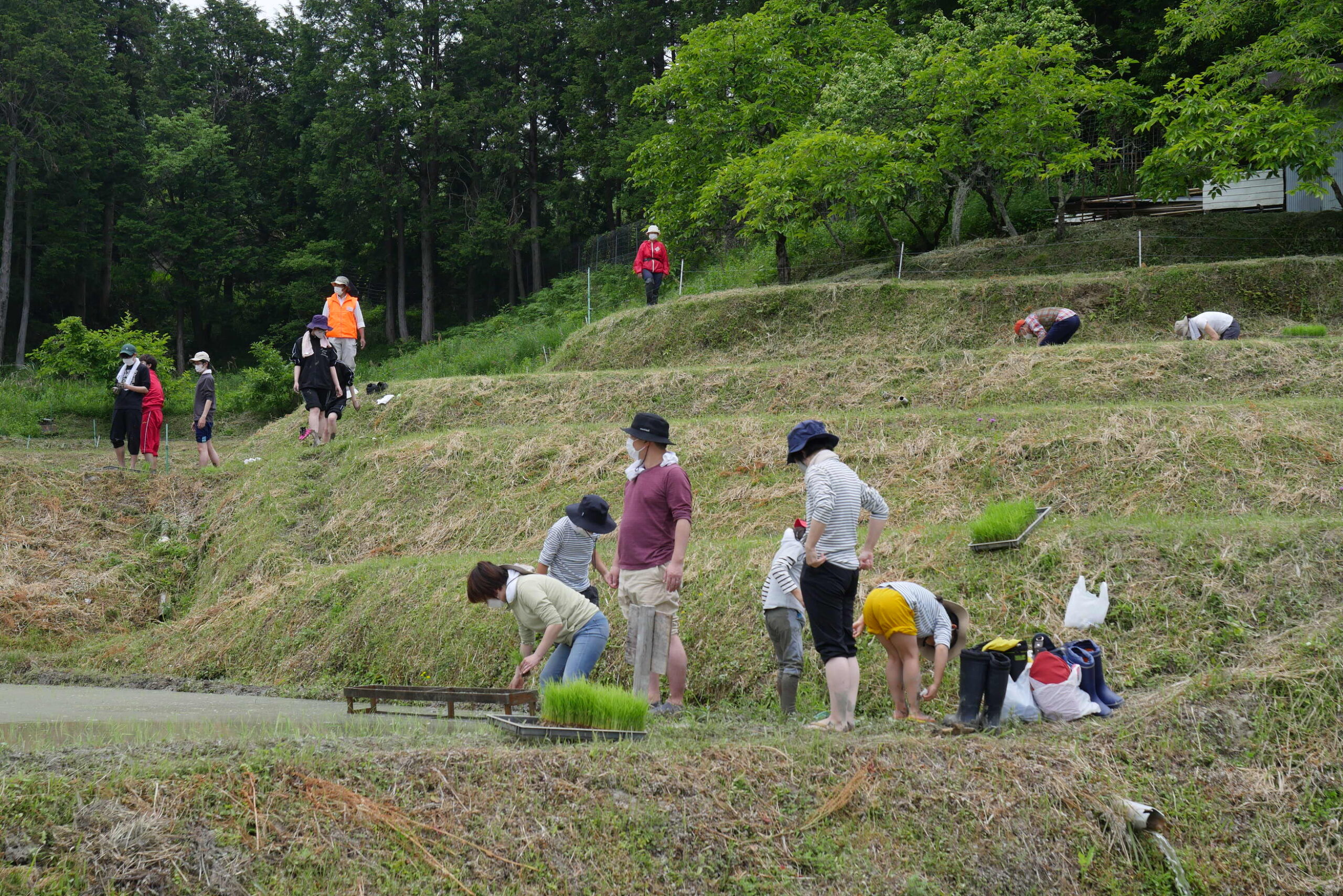 先週に引き続き田植えです。明日もあるので会員も連日たいへんですが、この3班は当会がオーナー制度をはじめてから続けてくださっている方が数組いらっしゃり、ベテランが多いので地主衆も特に何もすることなくにこやかに見守っています。のんびりした雰囲気がいいです。