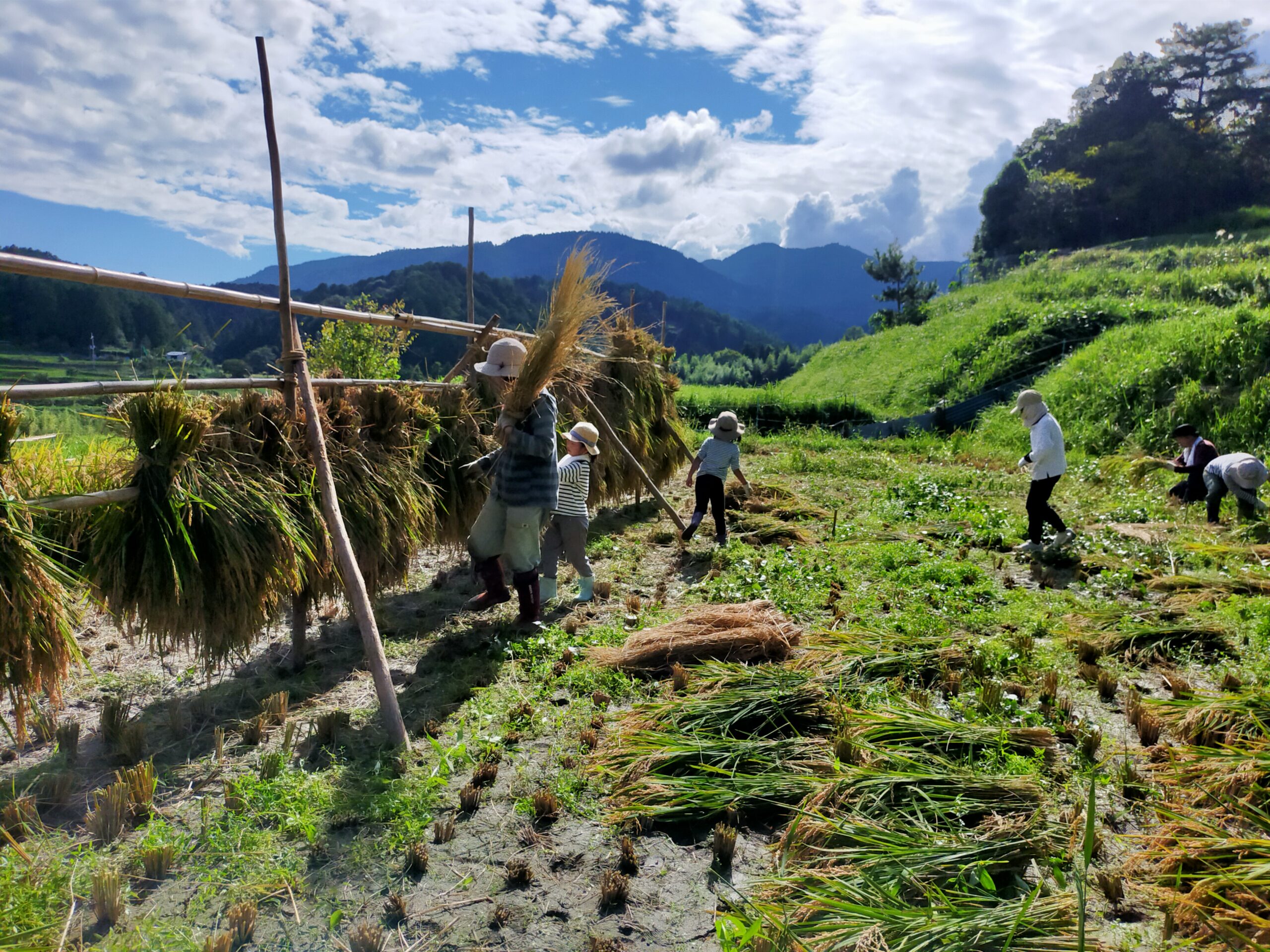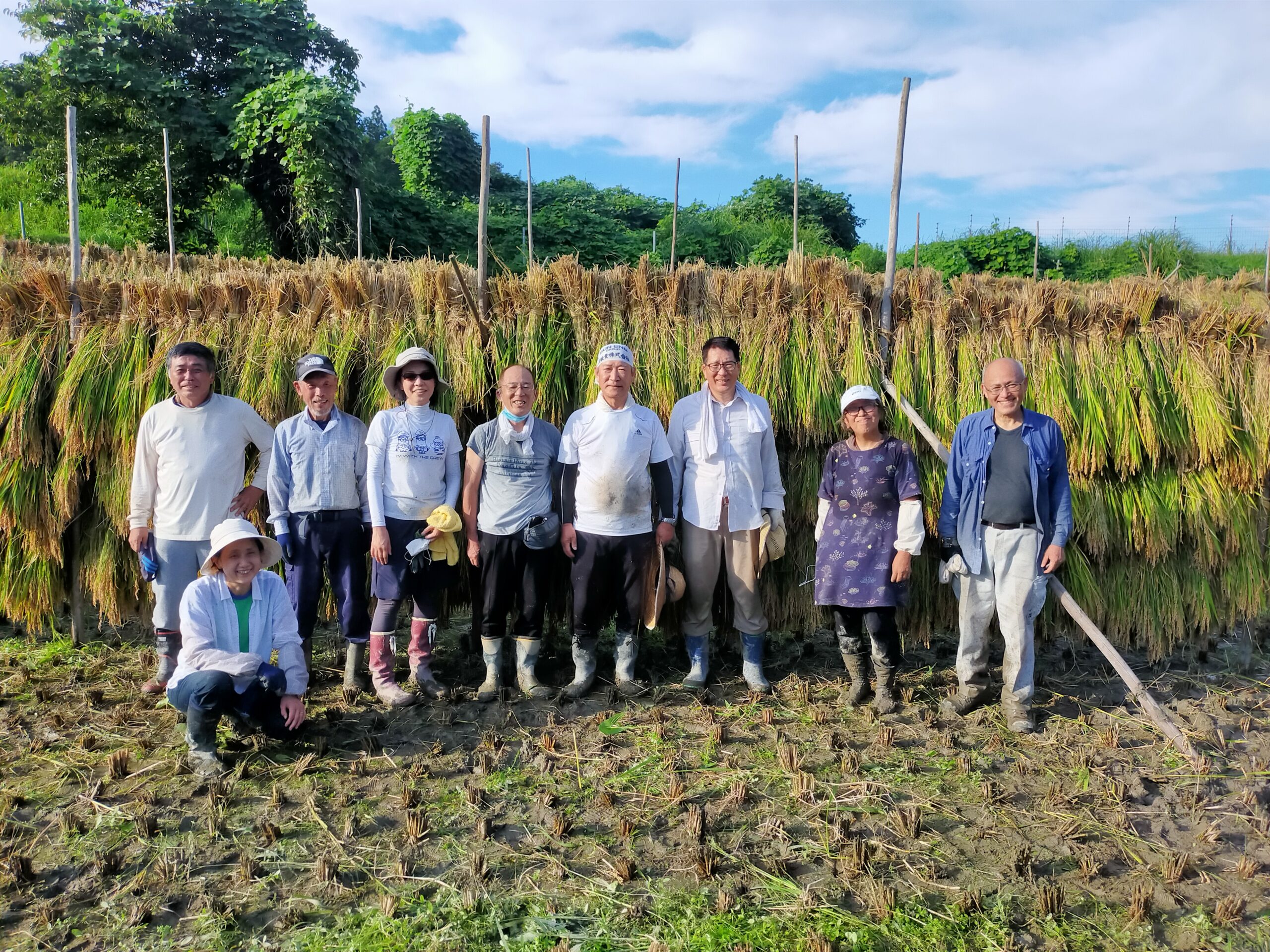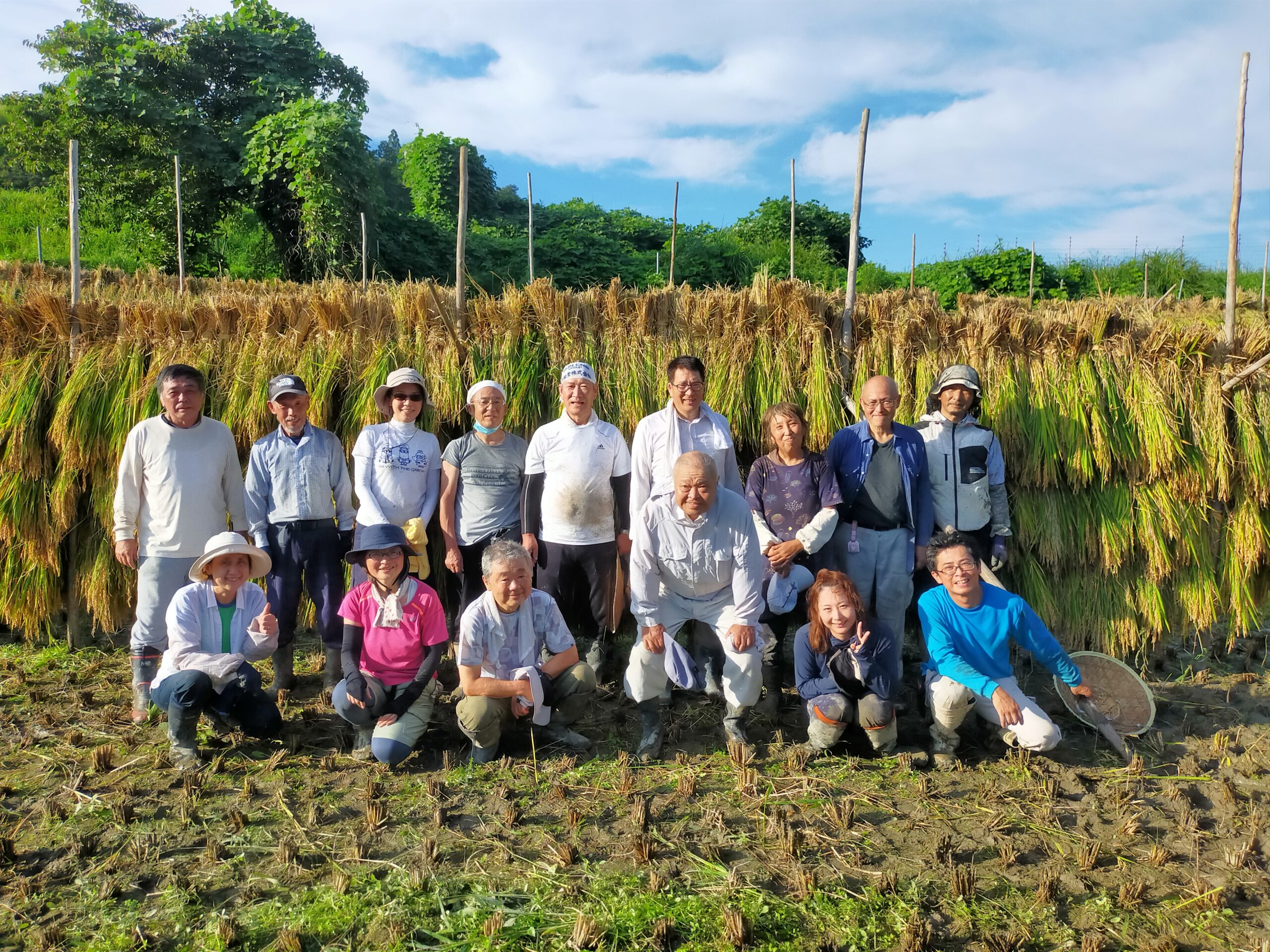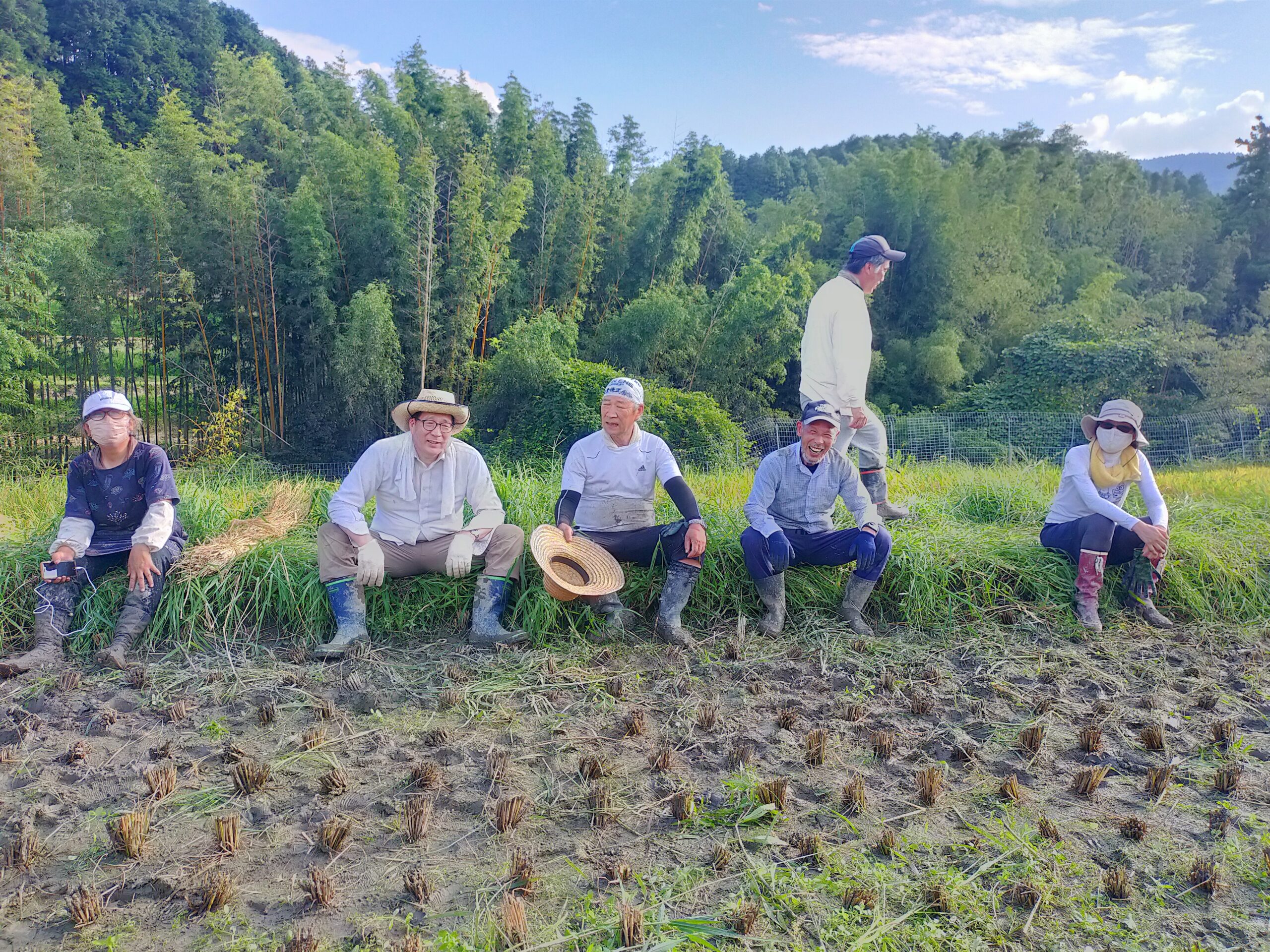 また、この日は気温と湿度も高くかなりたいへんで、ベテランが多い組でも「今年はちょっとしんどいなぁ」との声もありました。先週の稲刈りよりはましでお天気はよかったですが、最近ベストな状態での稲刈りができていないように感じます。地球環境変化のせい?