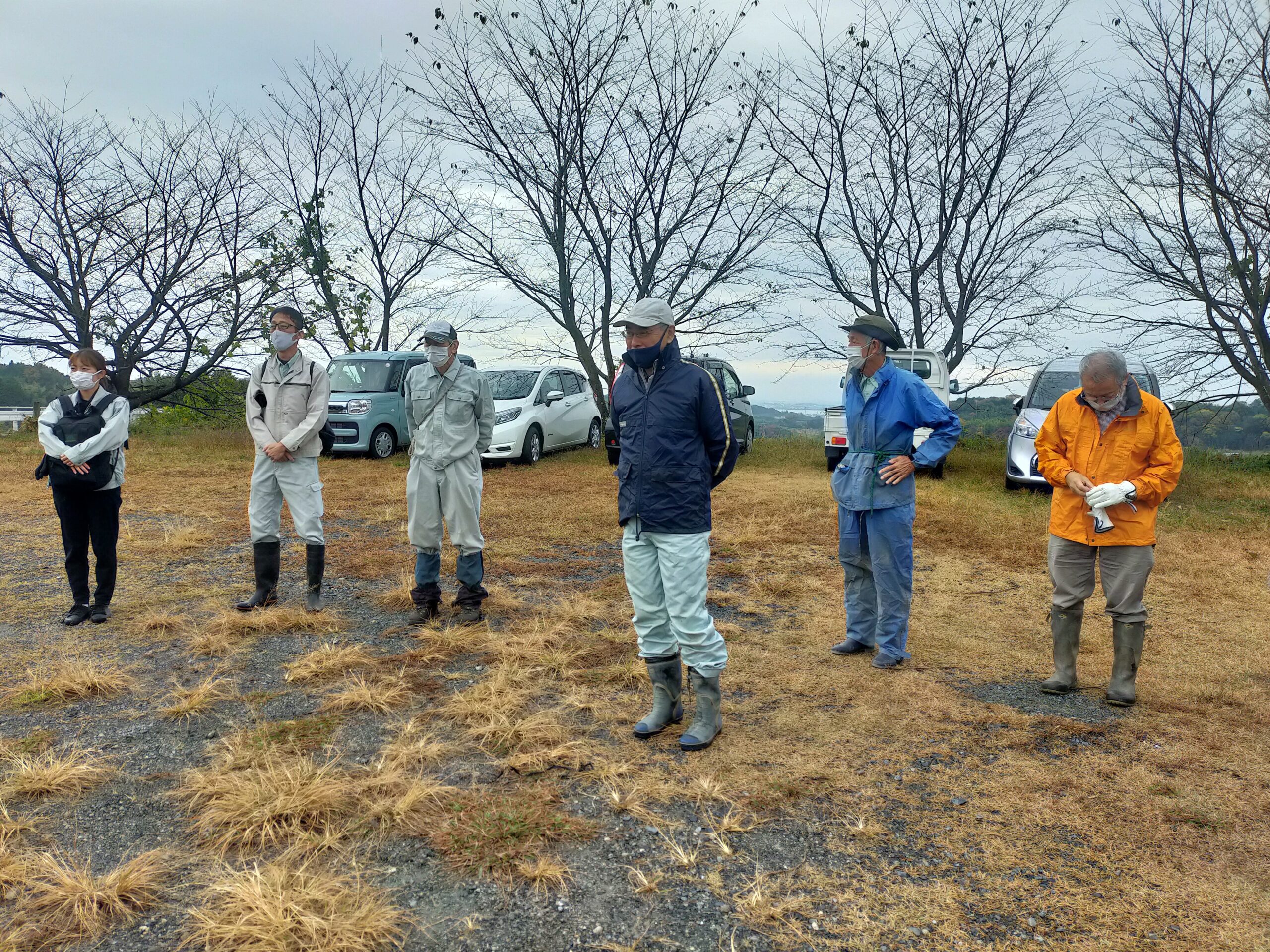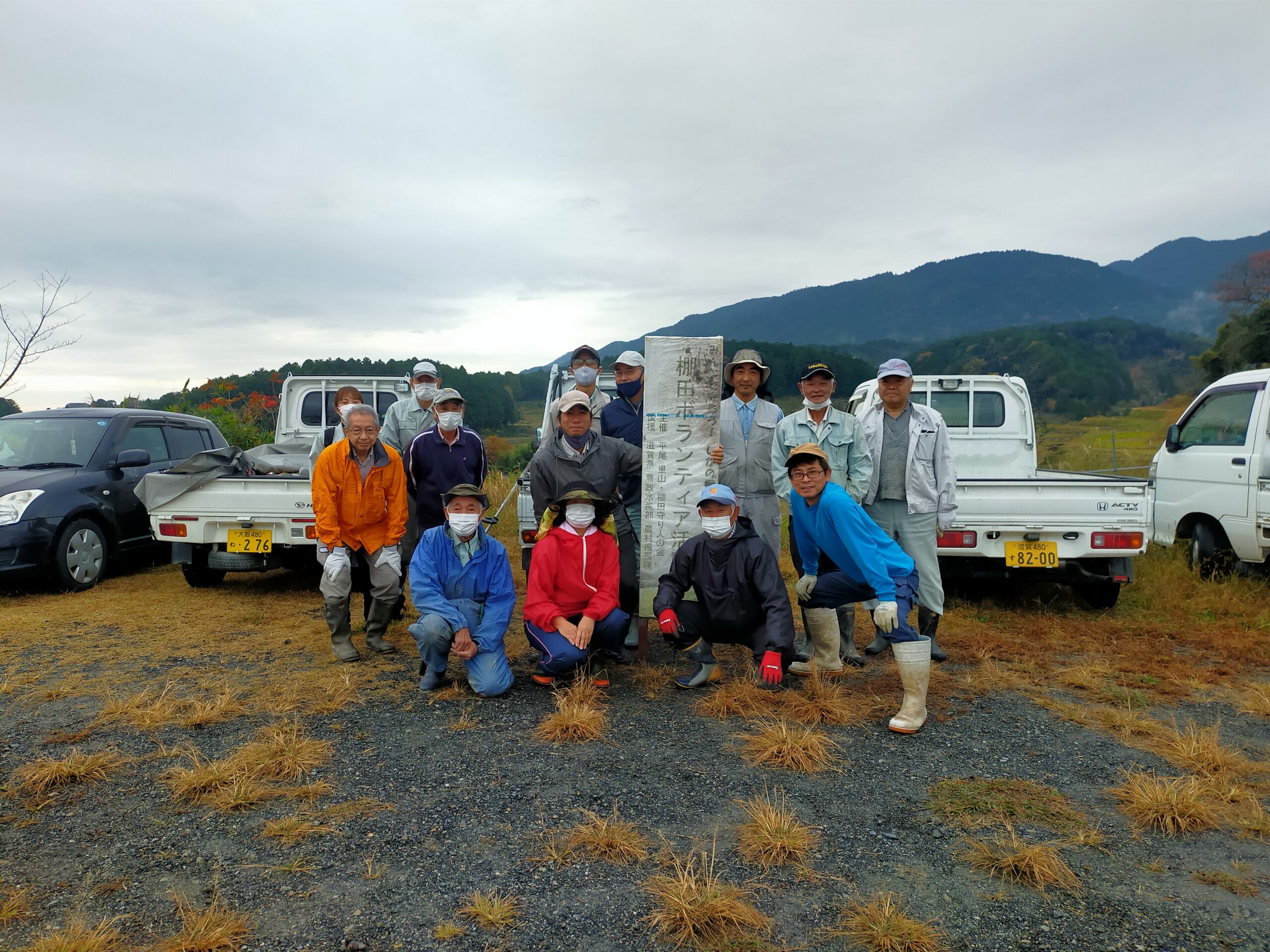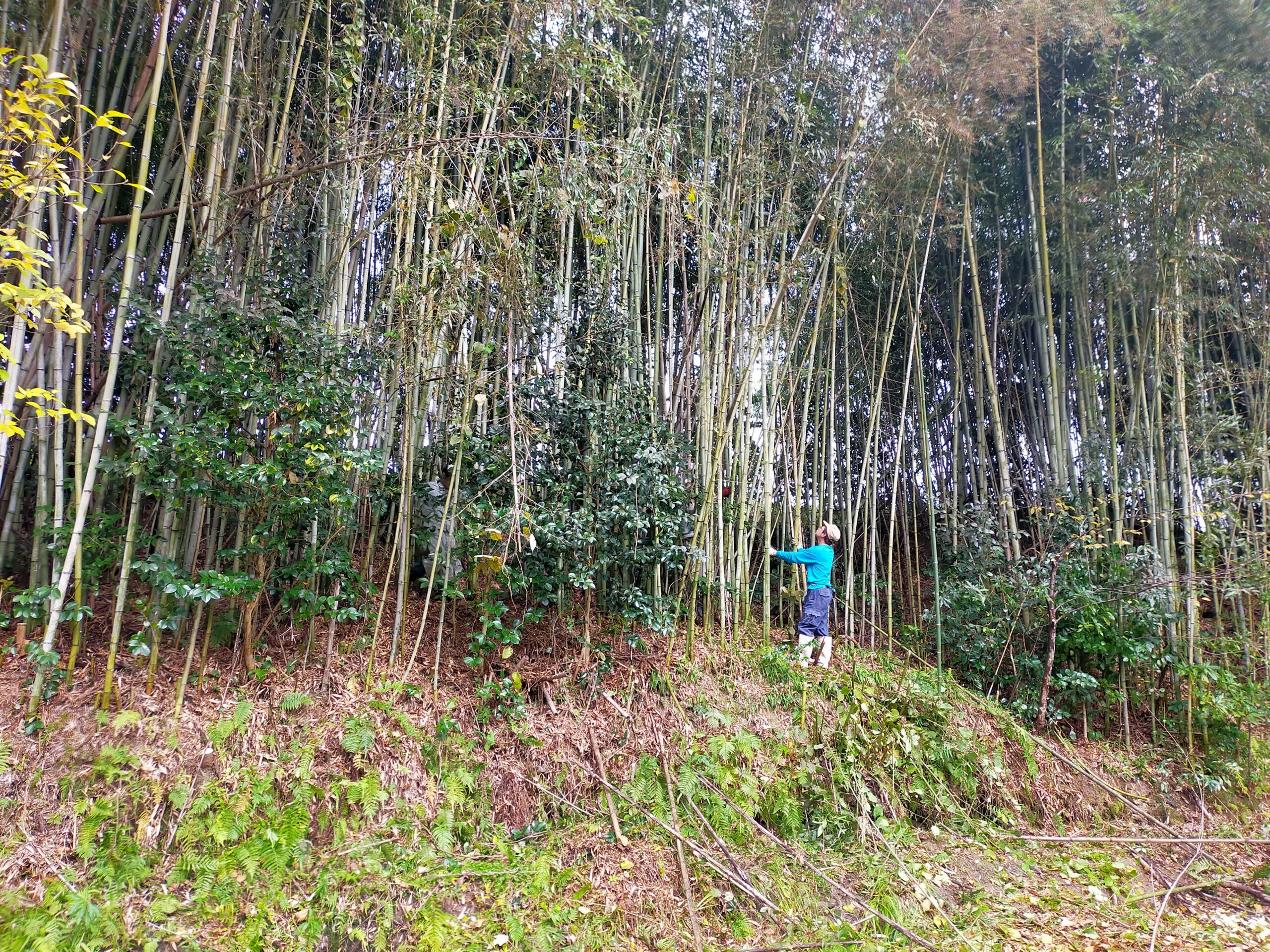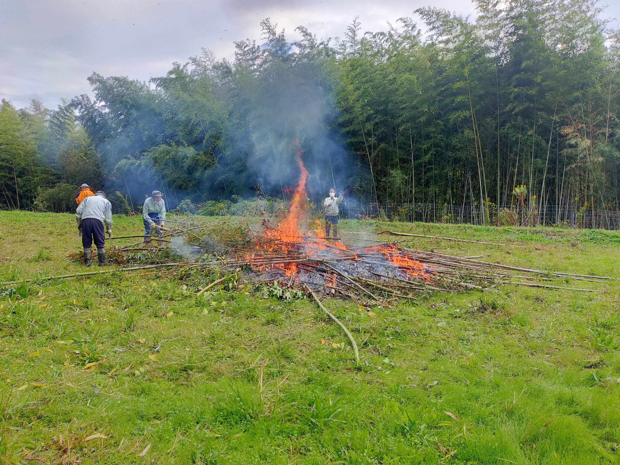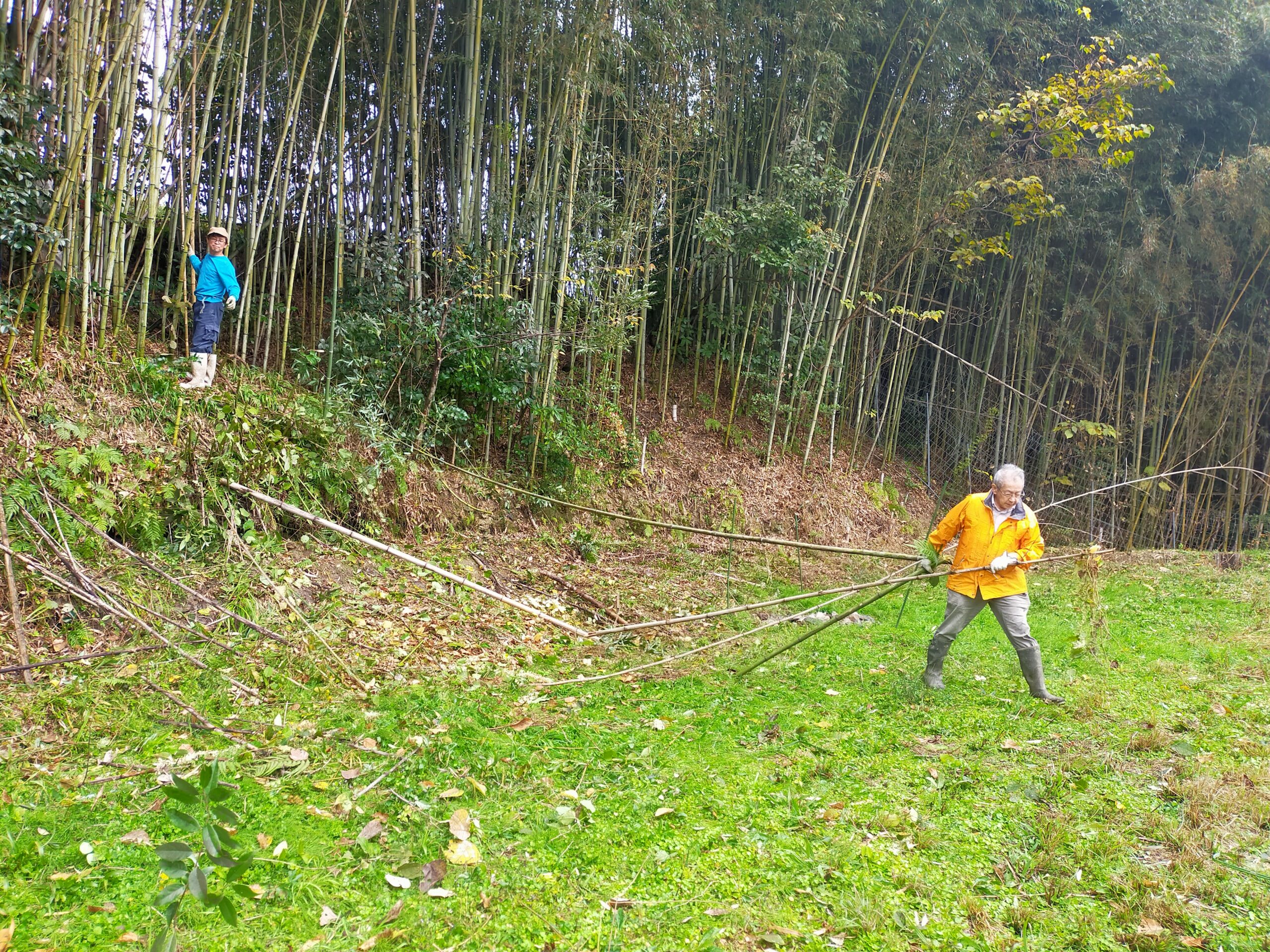夏場に稲木を切り出した竹藪にて次の稲木を切るときに切り出しやすいように稲木の補充がてら竹林整備をしました。今日は棚田地域の現状などの視察を兼ねて、滋賀県農村振興課の方も参加されました。