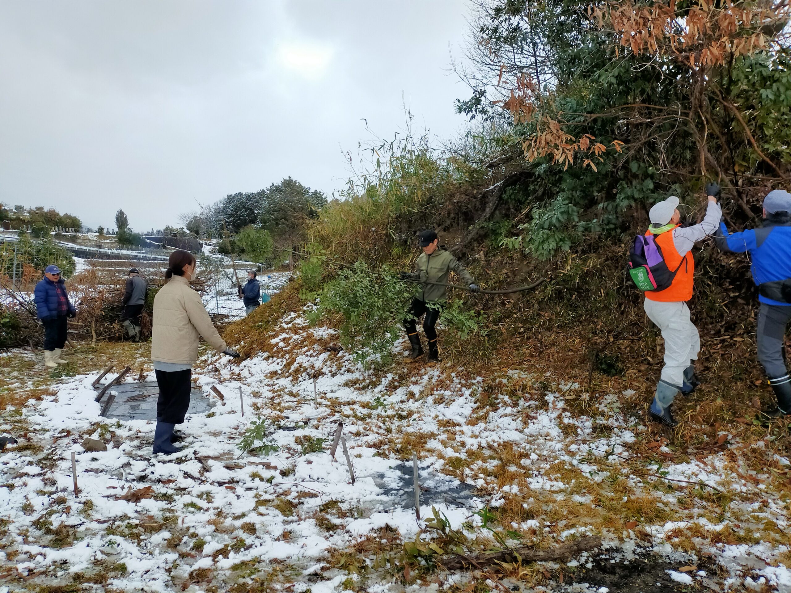 草刈りもする予定だったのですが、先日からの積雪で草刈りはあきらめ、ビュンビュンに生えている枝を切るなどに集中しました。
