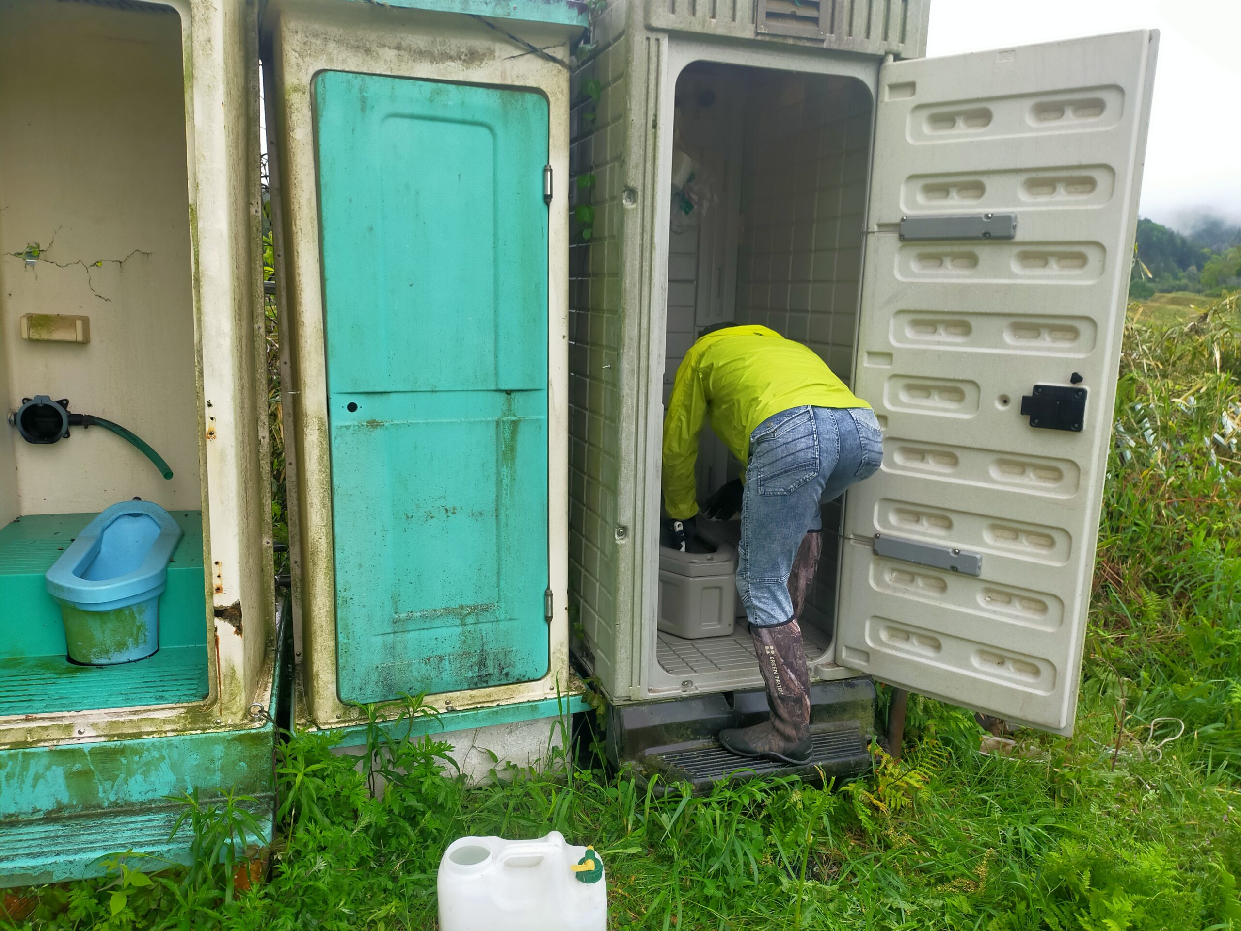 毎年オーナー制度が始まる前に駐車場に設置しているトイレを清掃しています。その他の時は秋に会員が自主的に清掃してくれています。簡易トイレなのできれいにするといっても限界があるのですが、不便のないようにはしておきたいと思います。