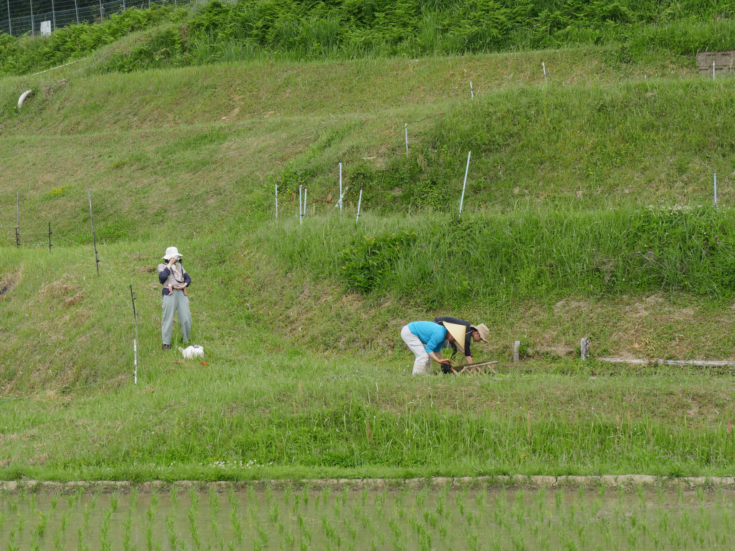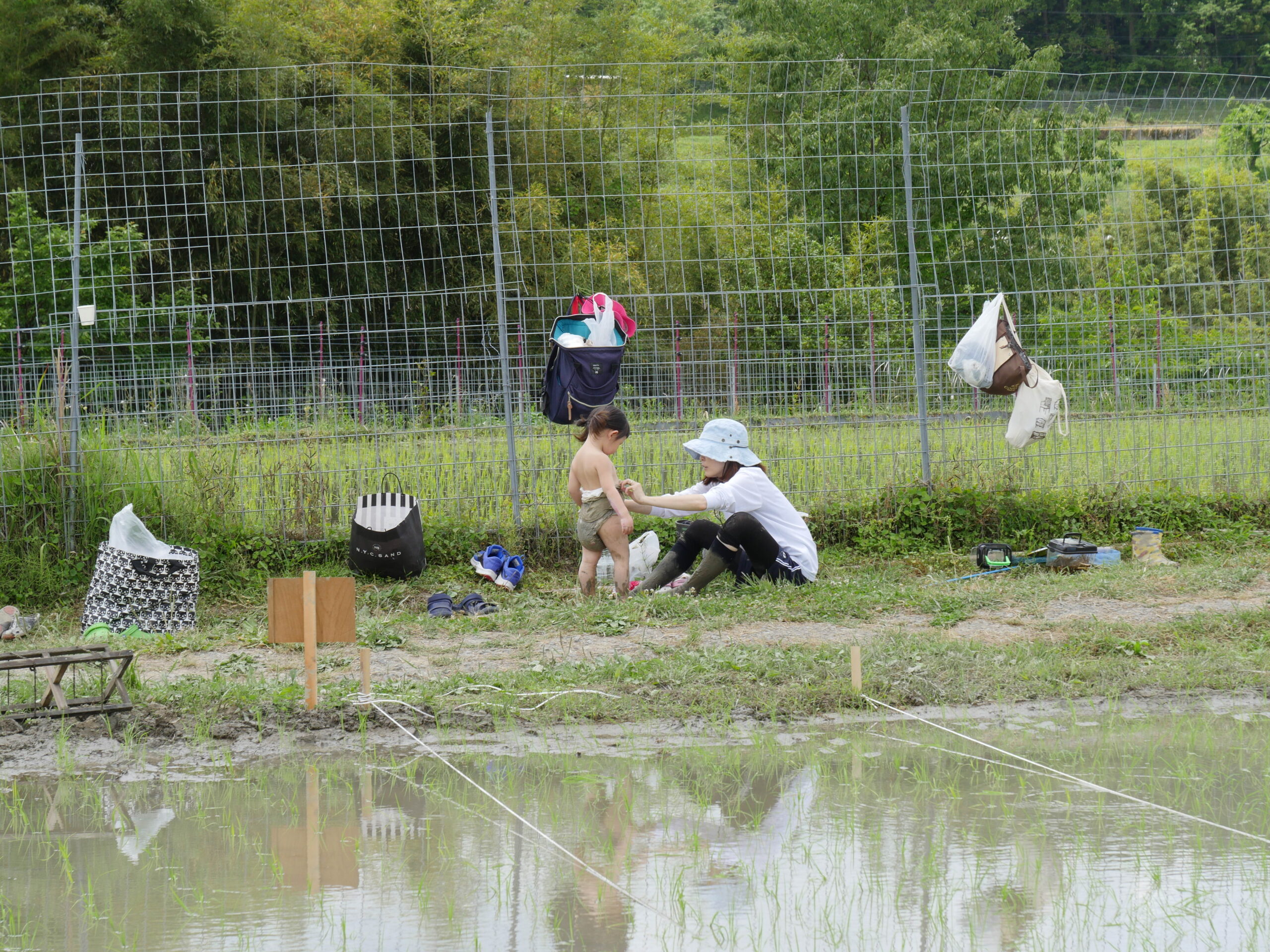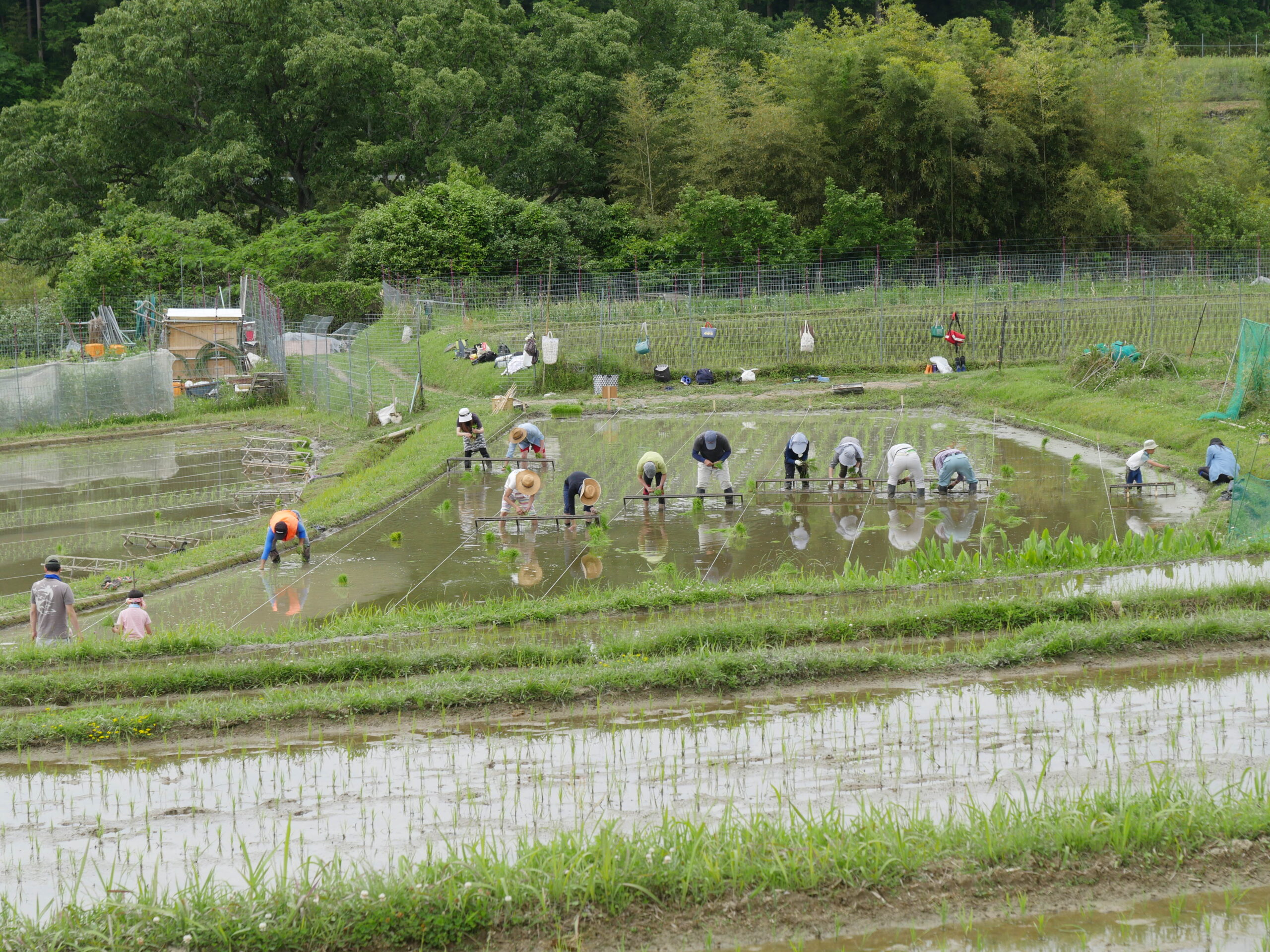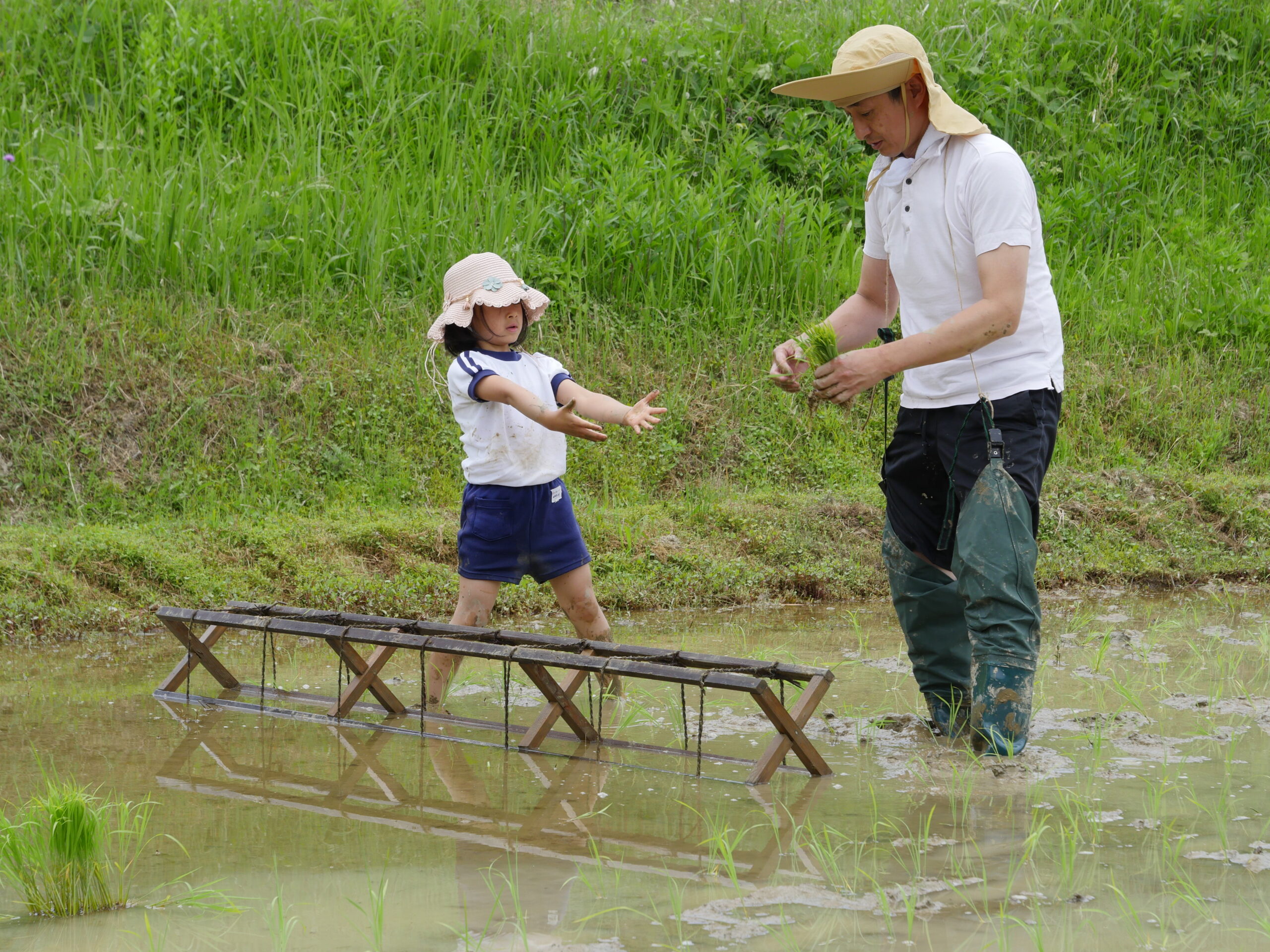 当会主催の田植えも今日が最後です。今日は都市住民が管理する班ともち米のオーナー制度の田植えをしました。