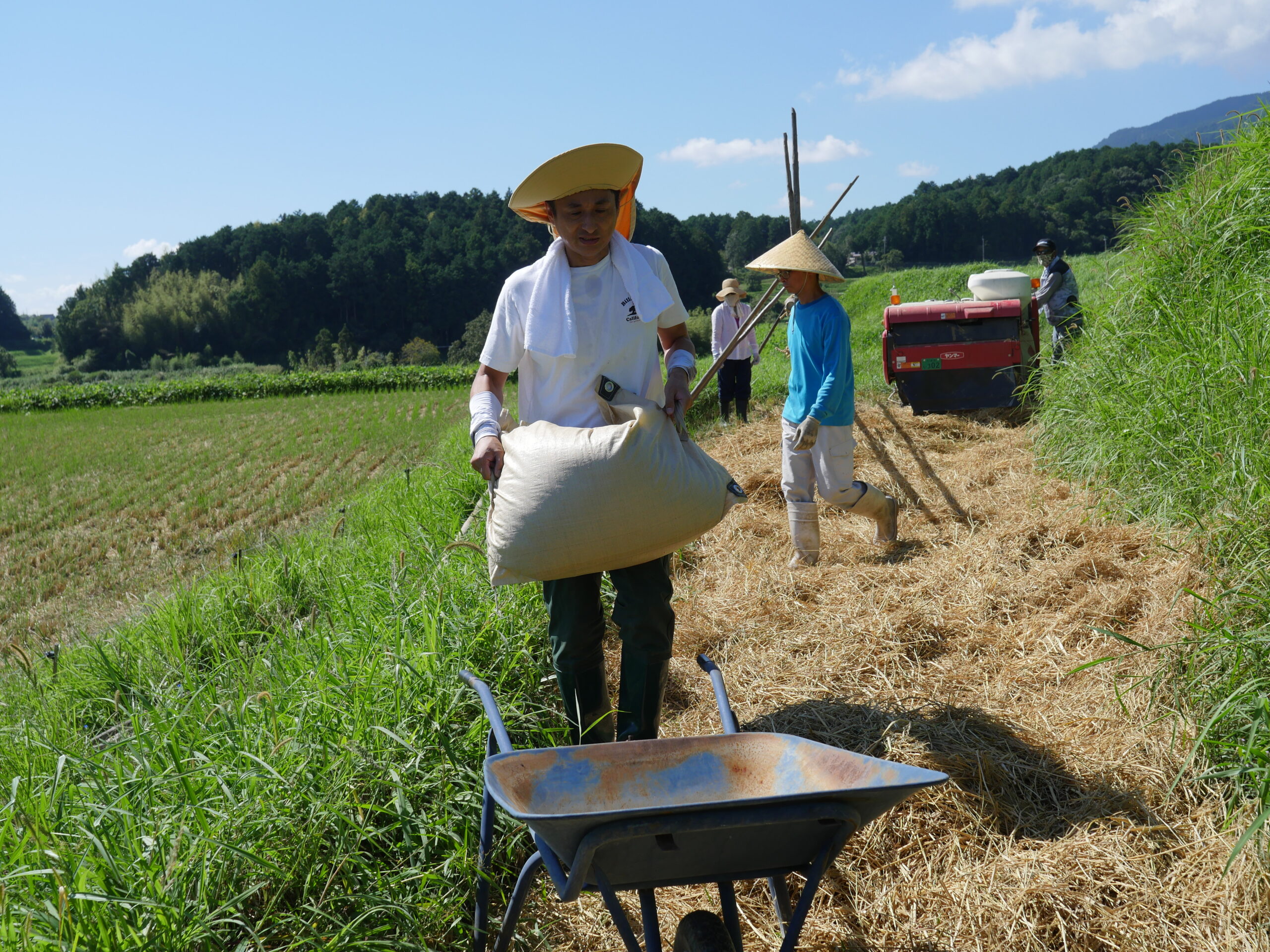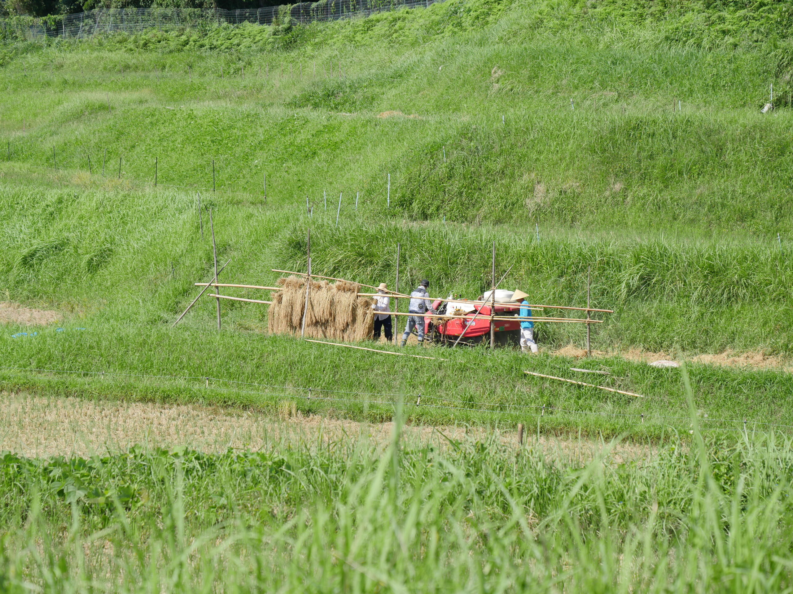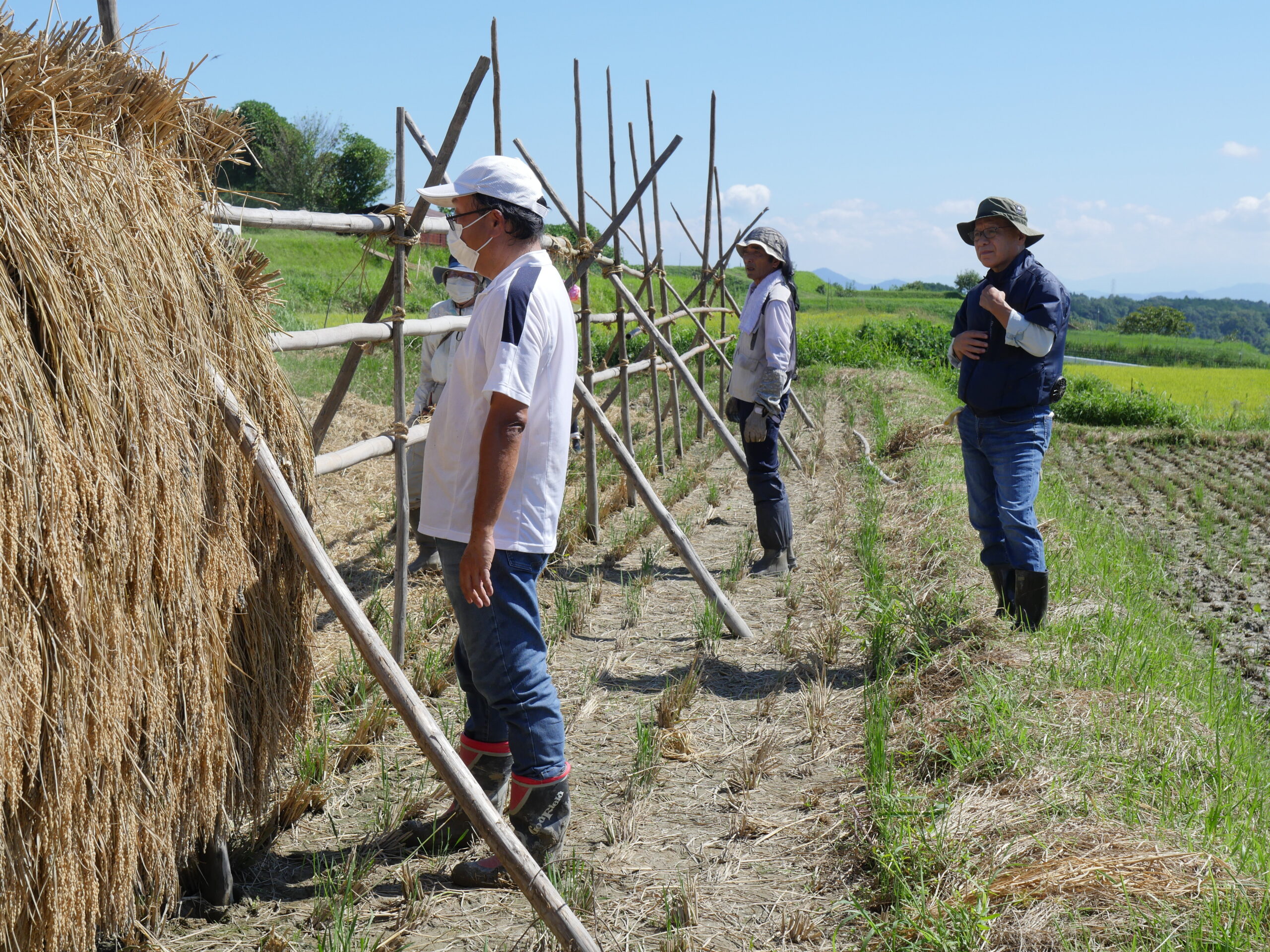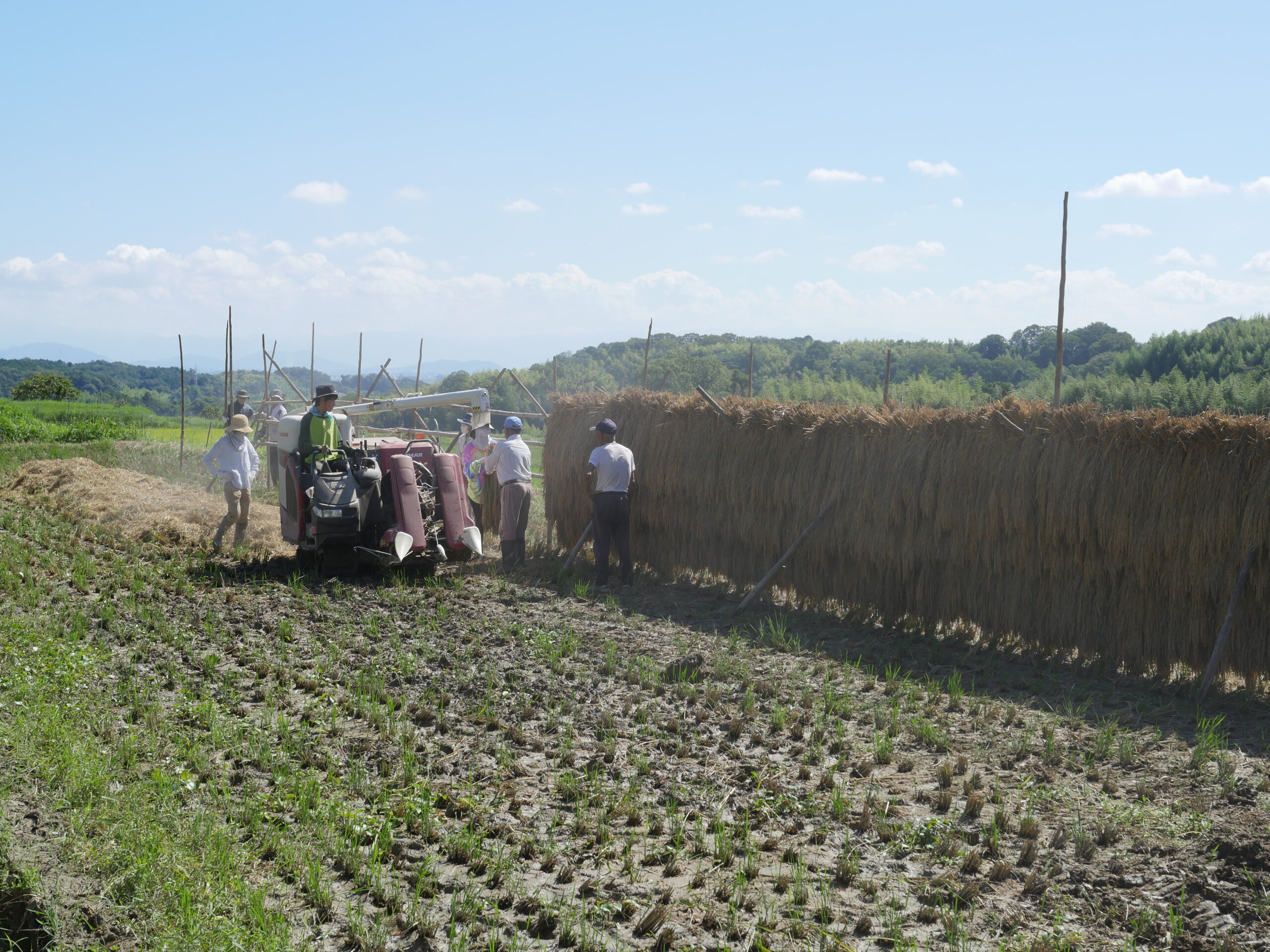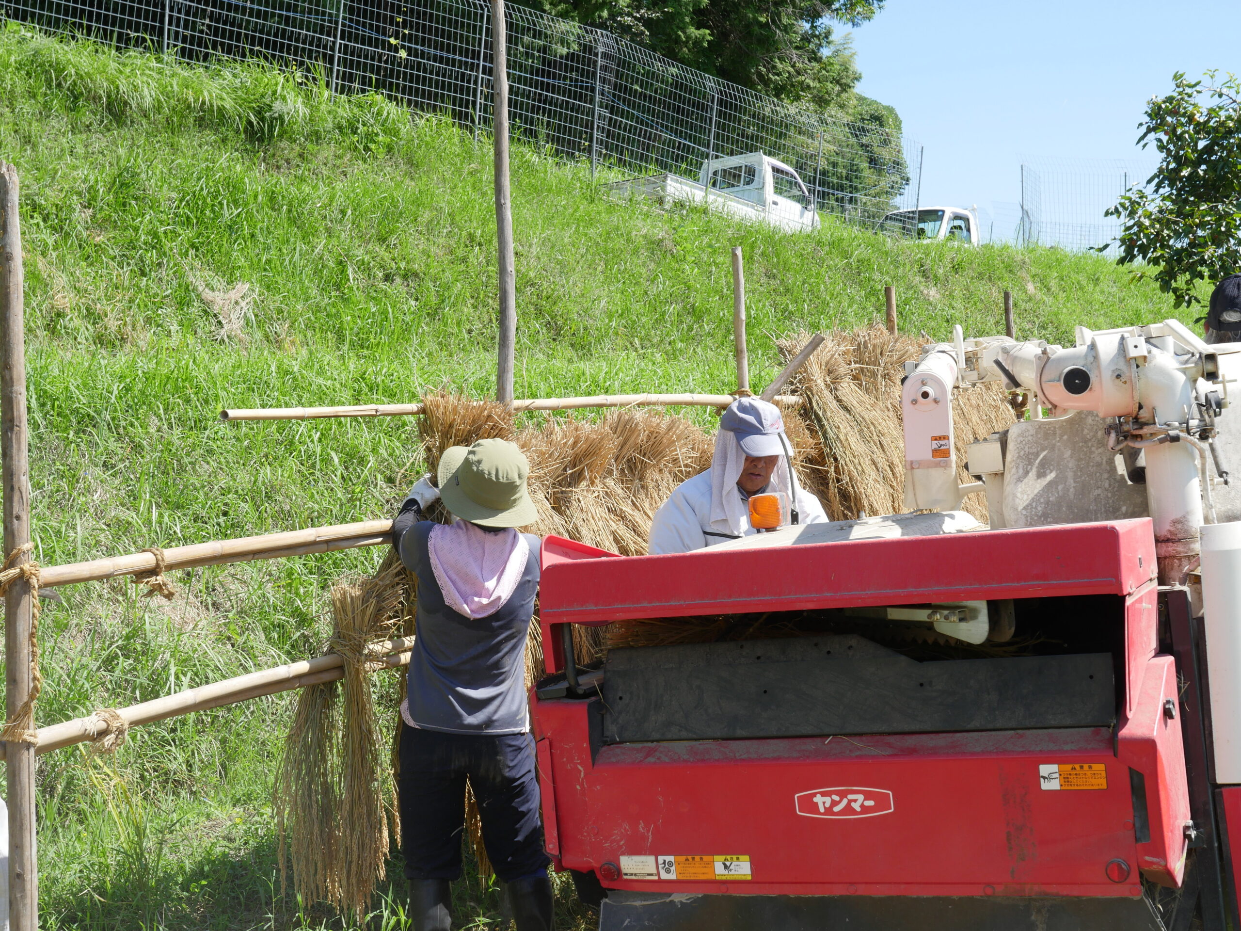 今週も脱穀作業です。脱穀作業は機械でしますので、カラッと晴れたときでないと機械に藁がつまったりして故障の原因にもなります。