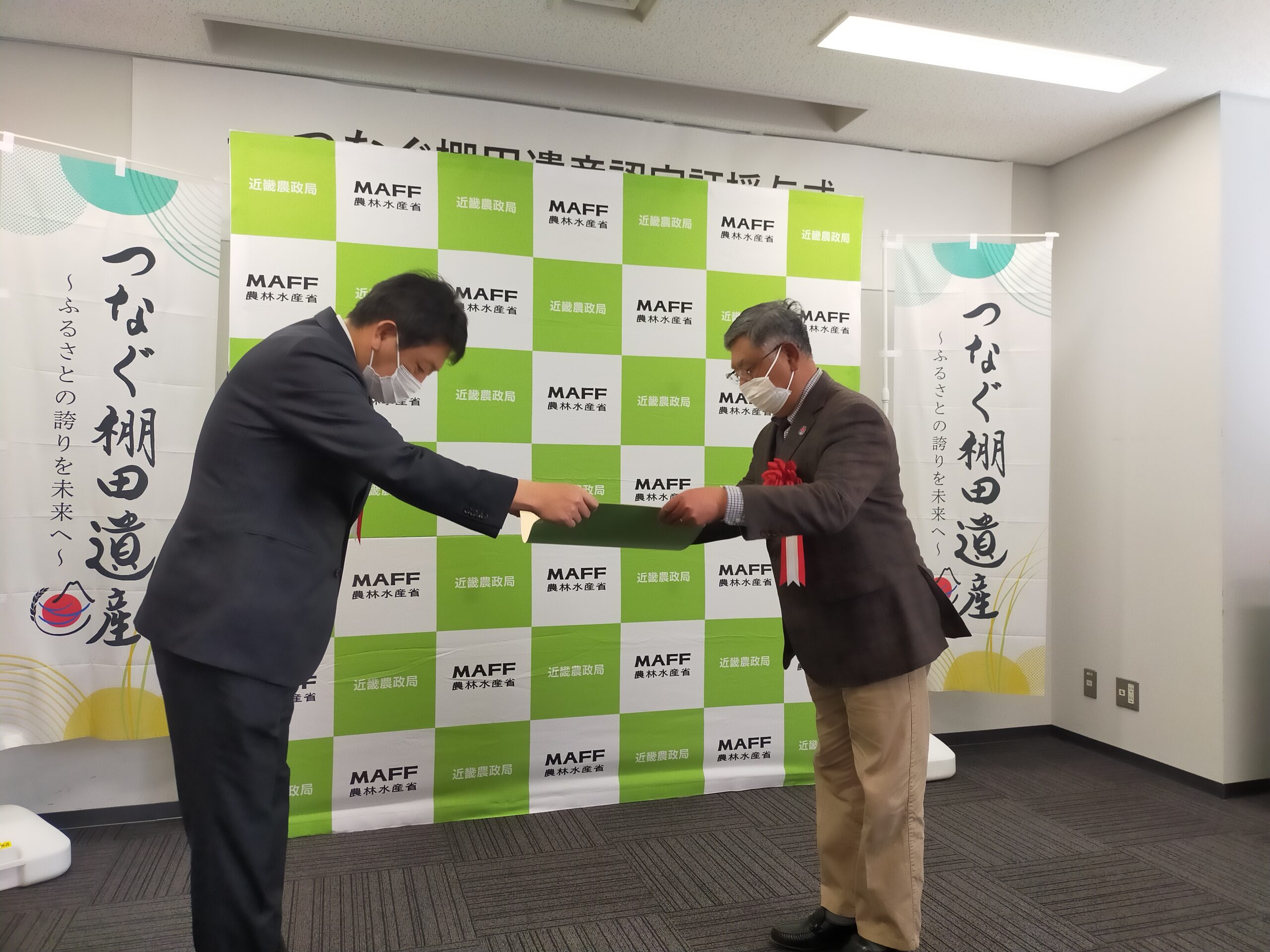 大津市から推薦を受け、仰木では上仰木と平尾がエントリーし、両地域とも授賞しました。