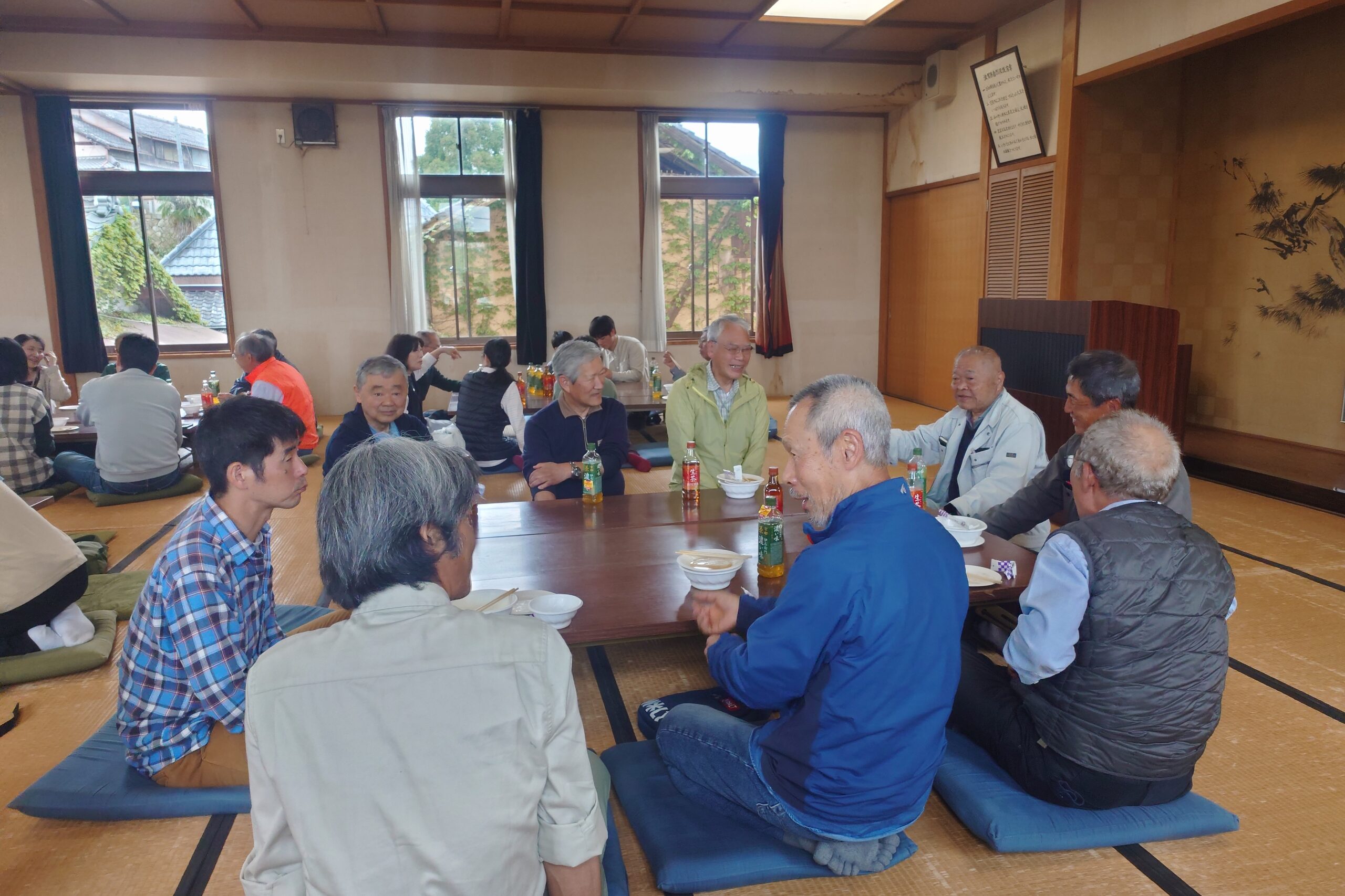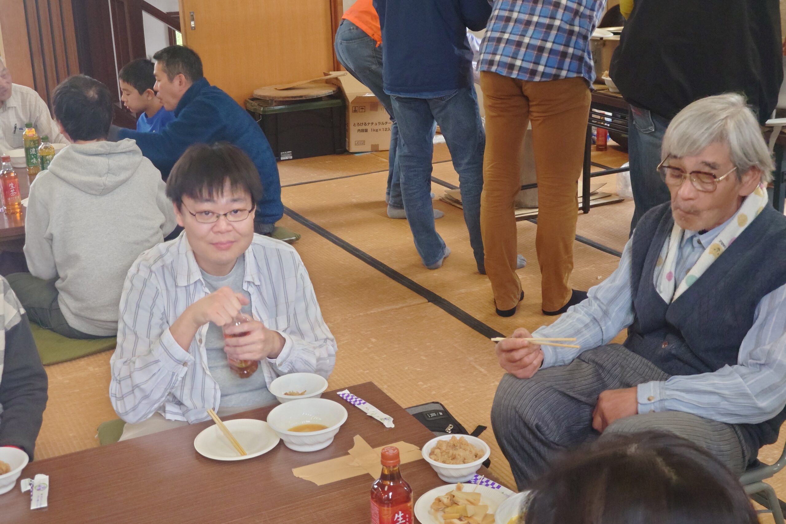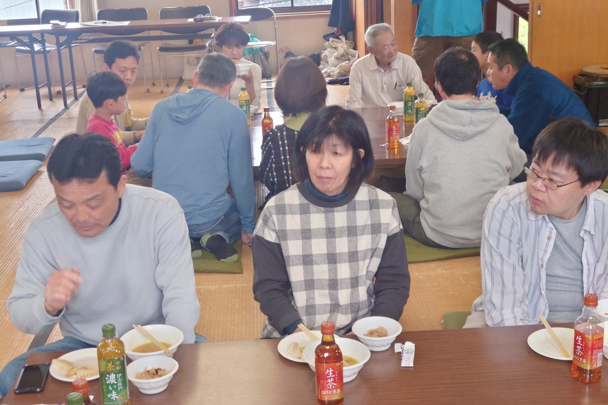 懇親会では作業する班ごとになります。そこに地主と当会のメンバーも加わります。