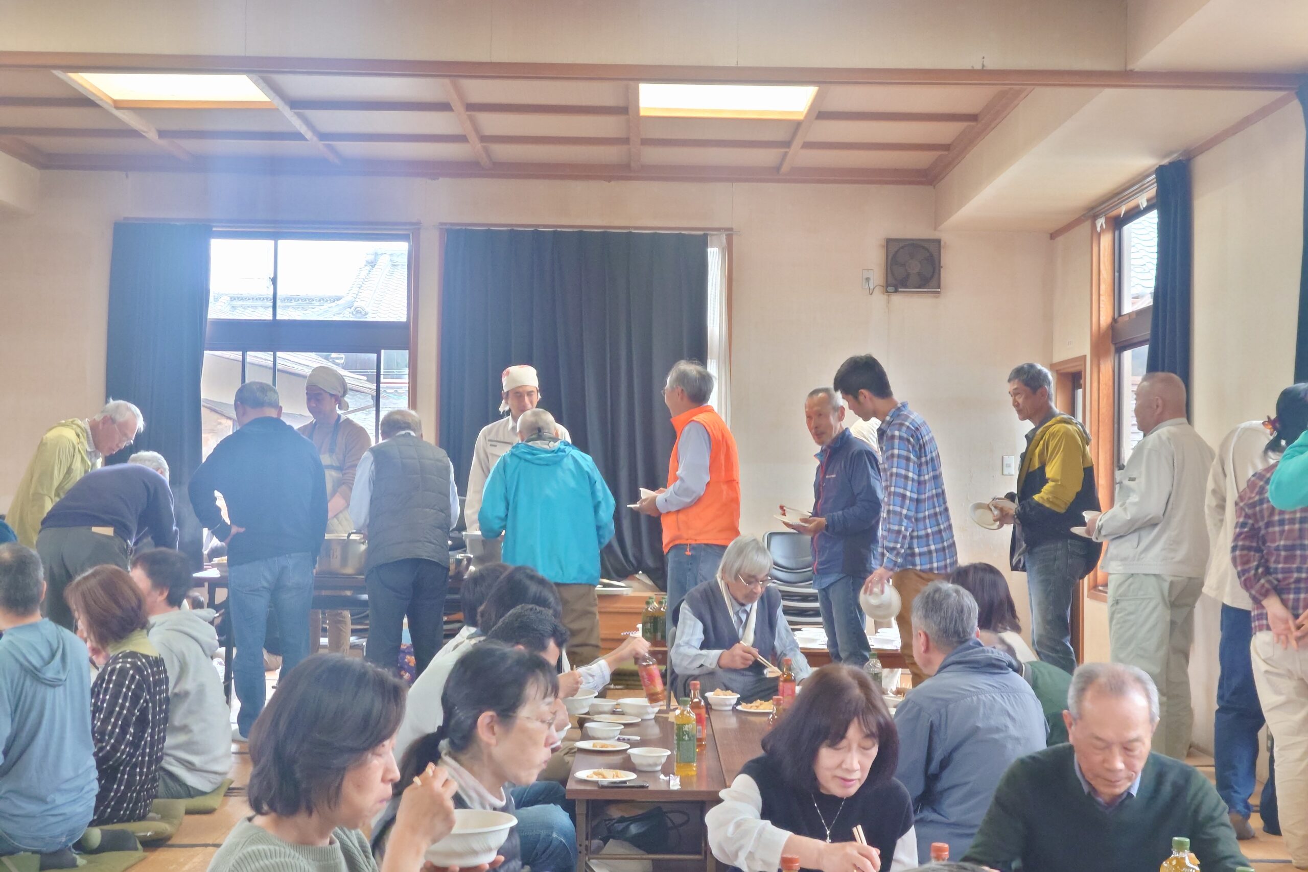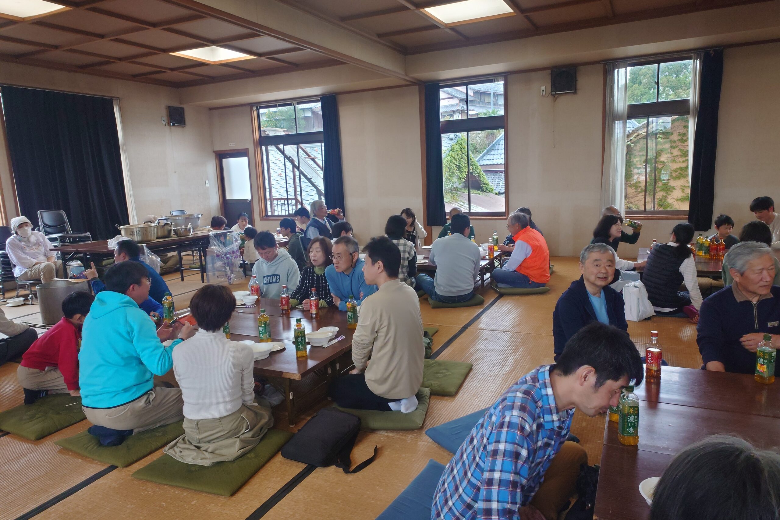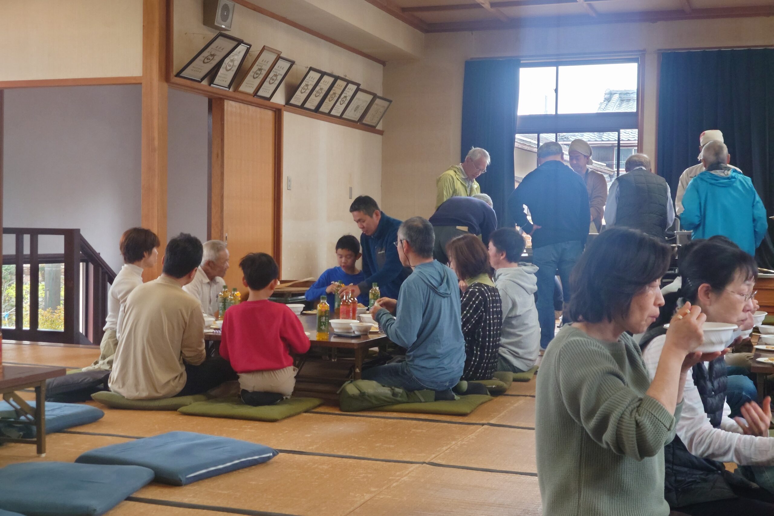 懇親会では作業する班ごとになります。そこに地主と当会のメンバーも加わります。