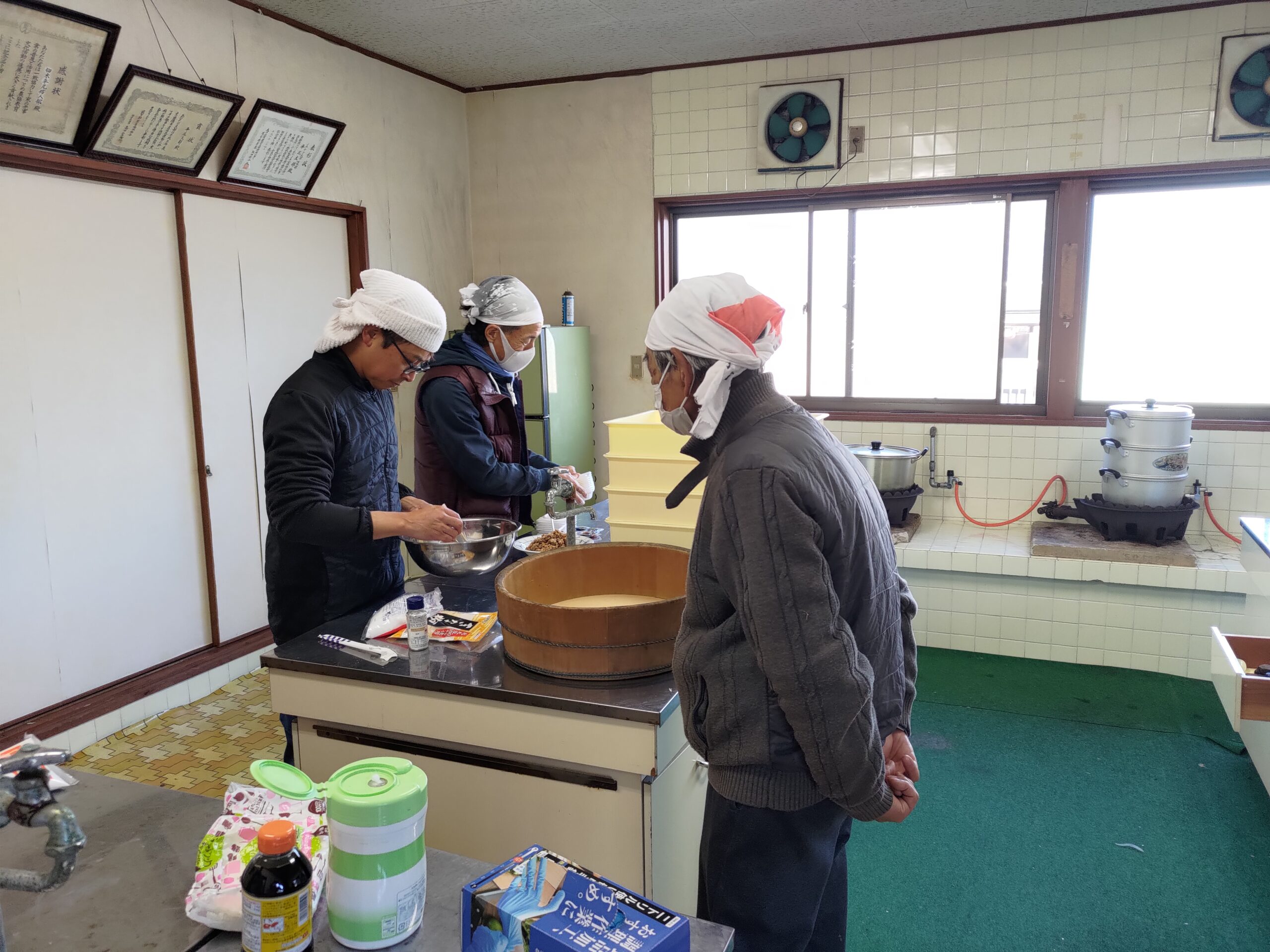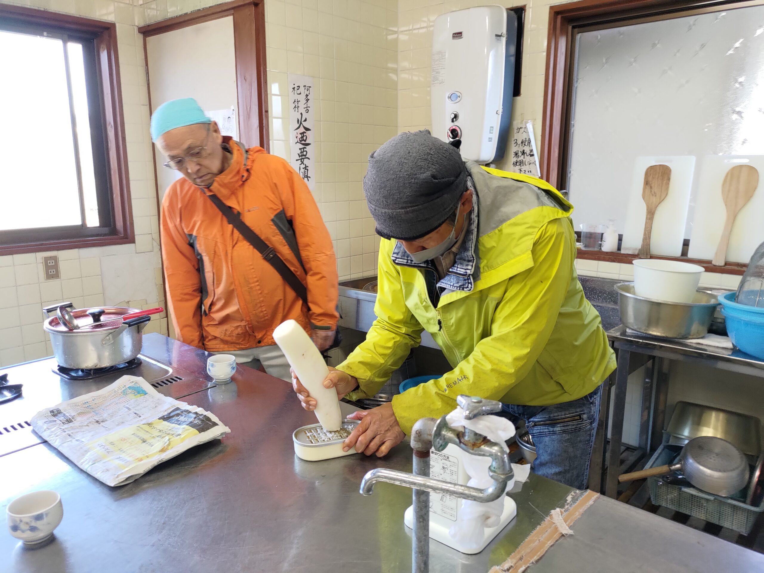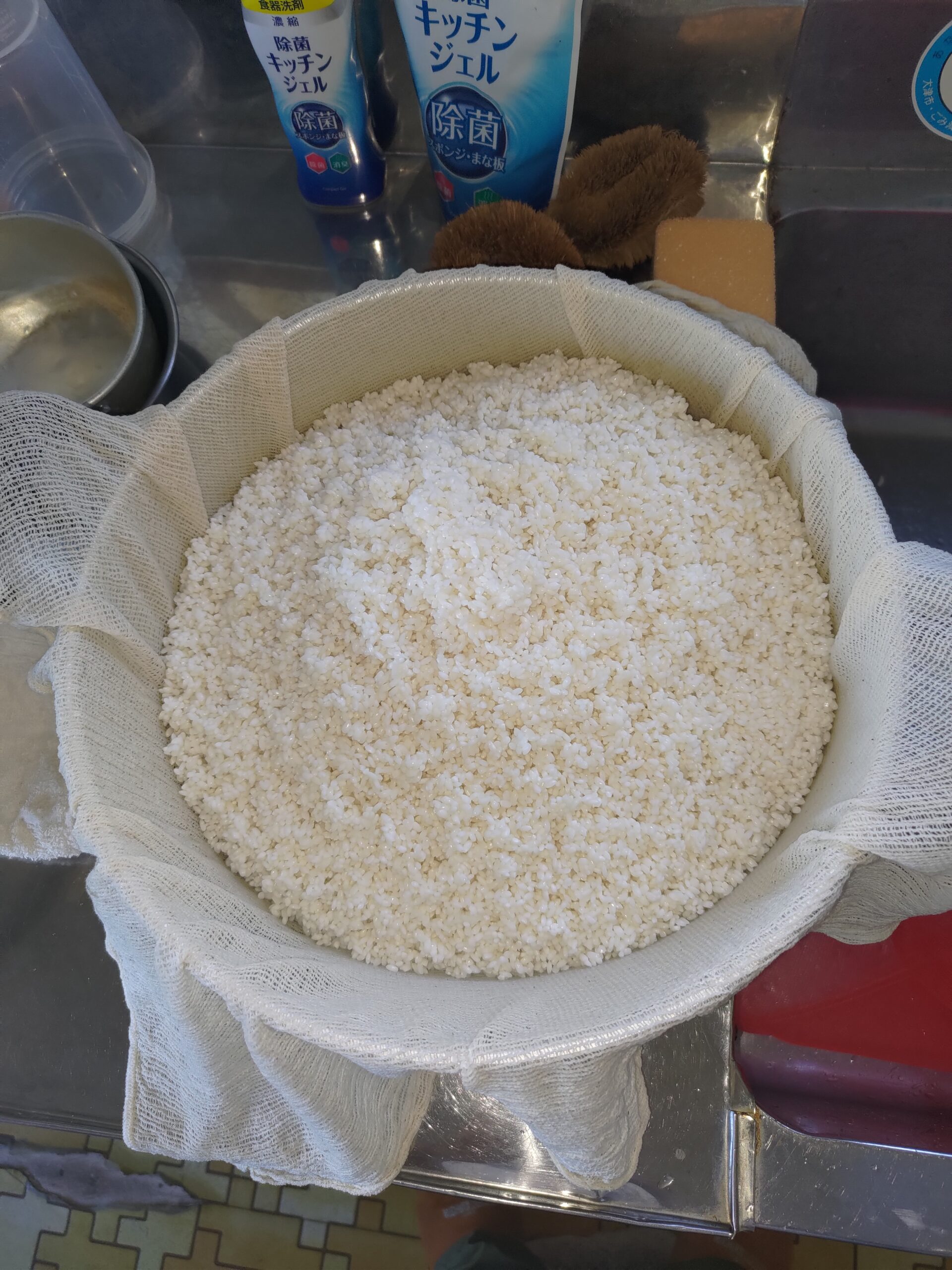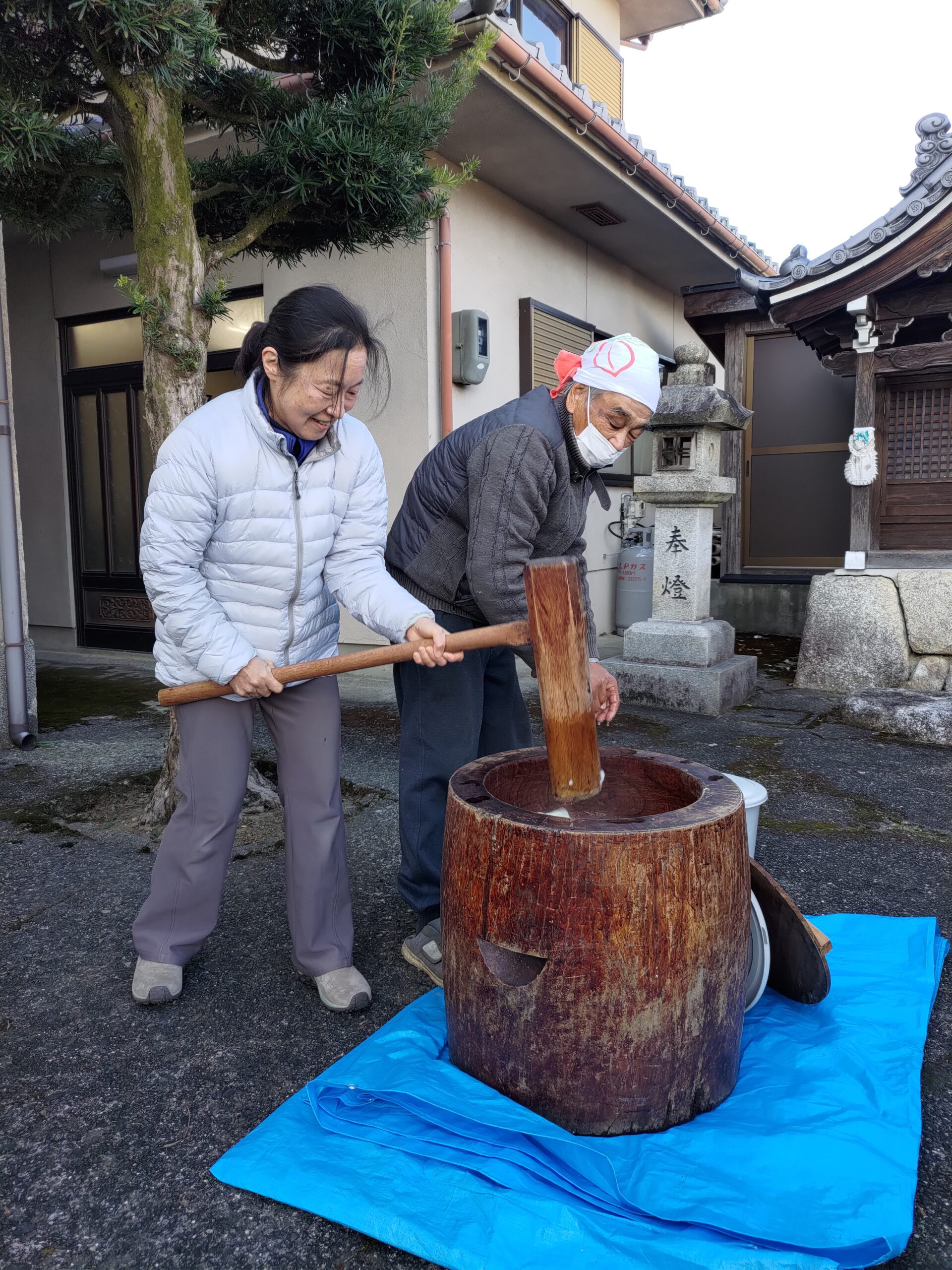 通常はお餅つきをするのにもち米は前日に洗って浸水しておき、間に一度水替えするのが一般的だと思います。ところが、仰木では丸二日浸水させます。仰木ではこれが一般的です。